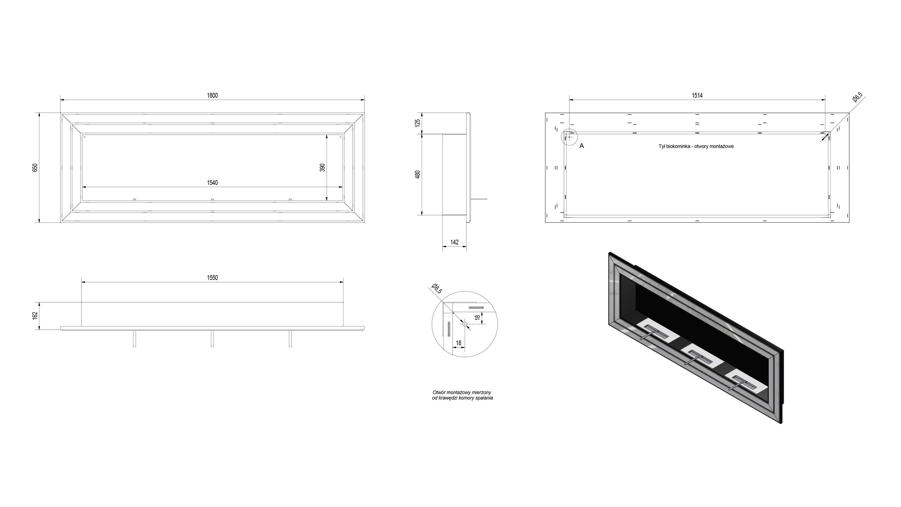 Wandkamin Bioethanol JULIET 1800 TÜV Set