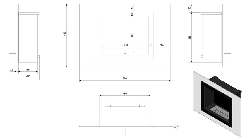 Wandkamin Bioethanol OSCAR TÜV schwarz