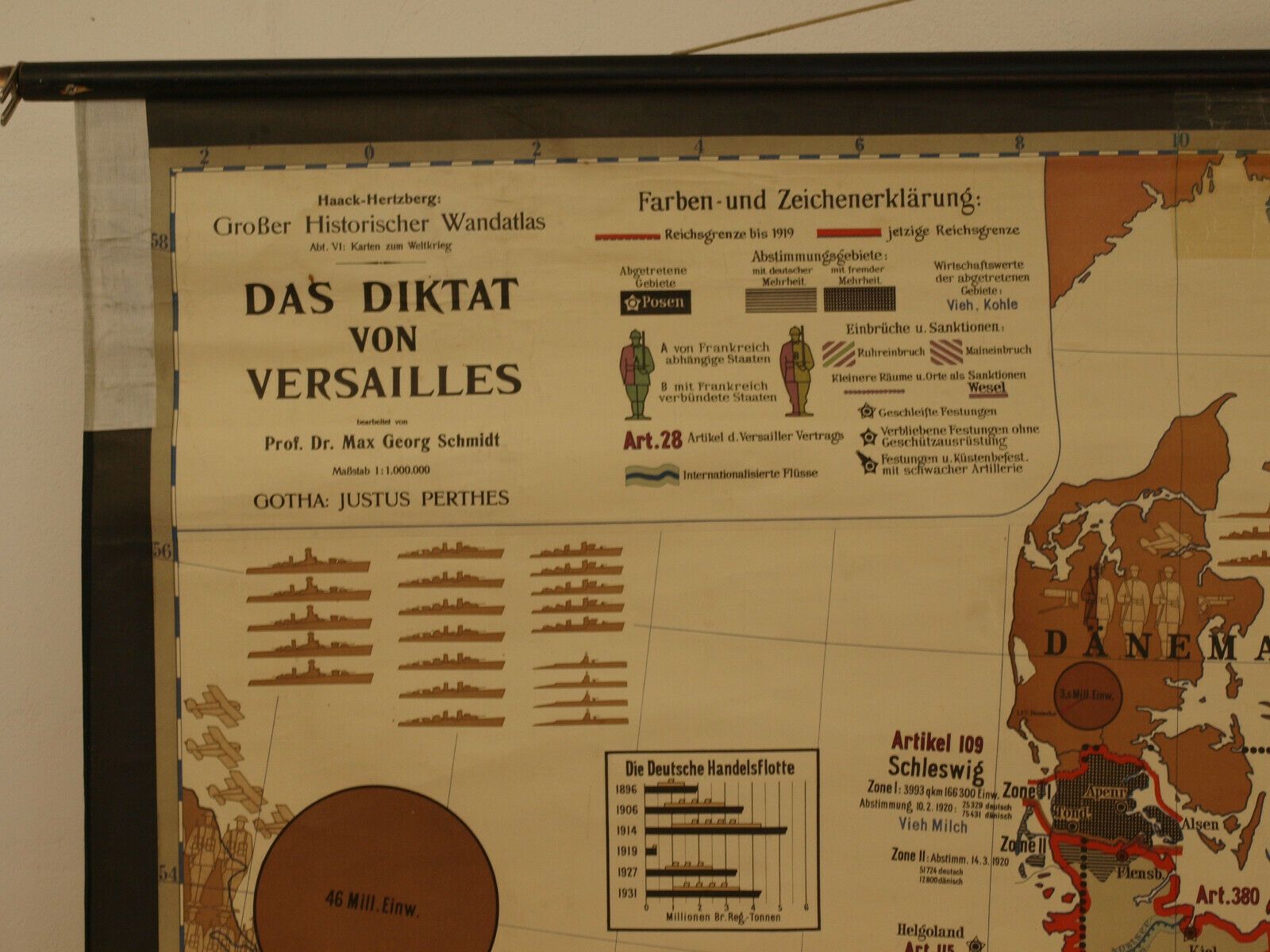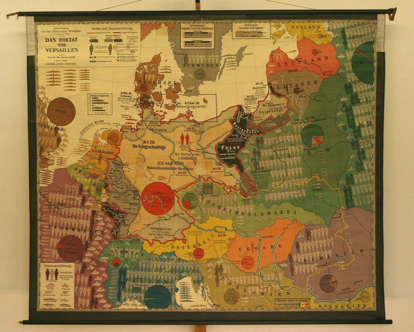 Wandkarte Das Diktat von Versailles Vertrag VS Fremdbestimmt 213x182 Druck: 1938 Siehe in der Liste unter Nr.1166 Das Diktat von Versailles (KV129) 1.- 11. Bild !, 12. Bild aus dem Verlags-Hauptkatalog von 1935 zur Info Kartensammler (allumfassend...speziell deutsche bezahlbare Karten ab 1900) verka