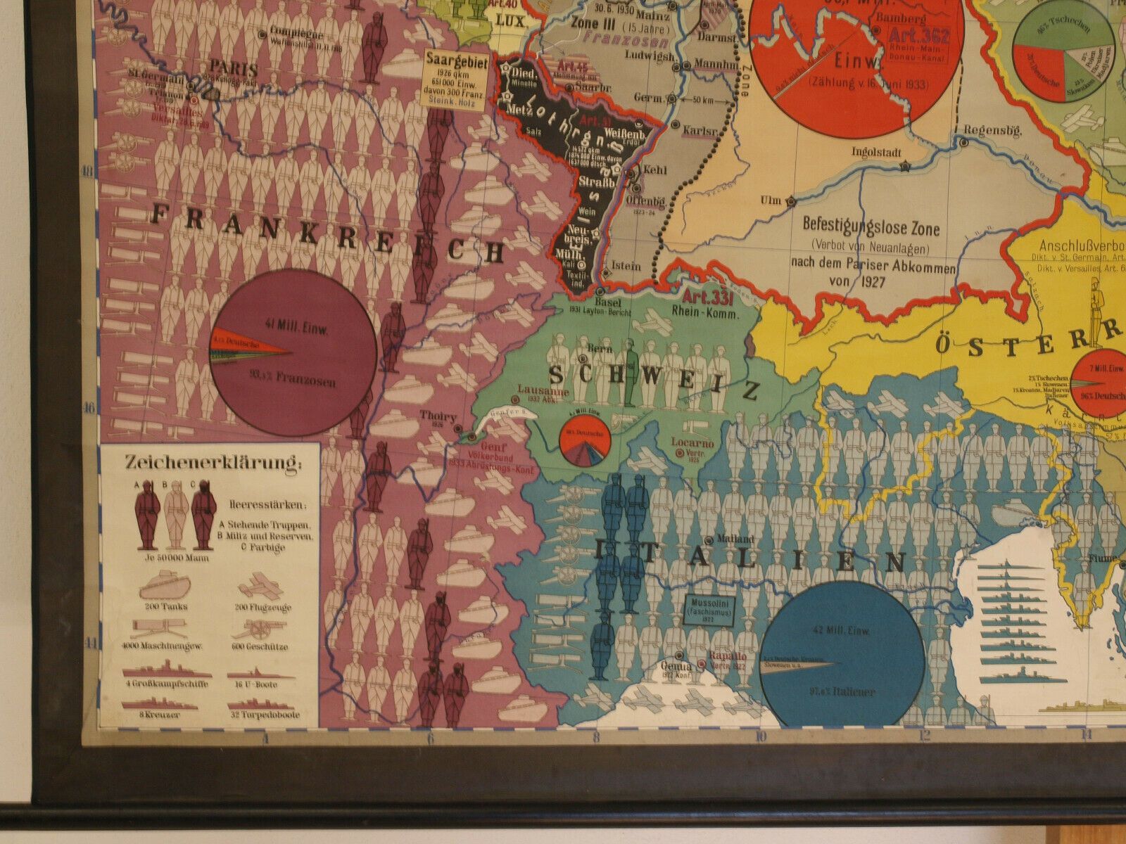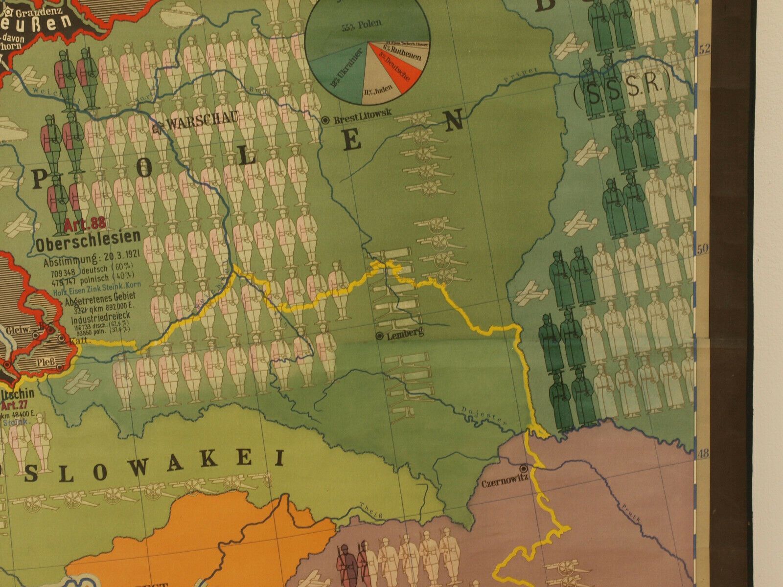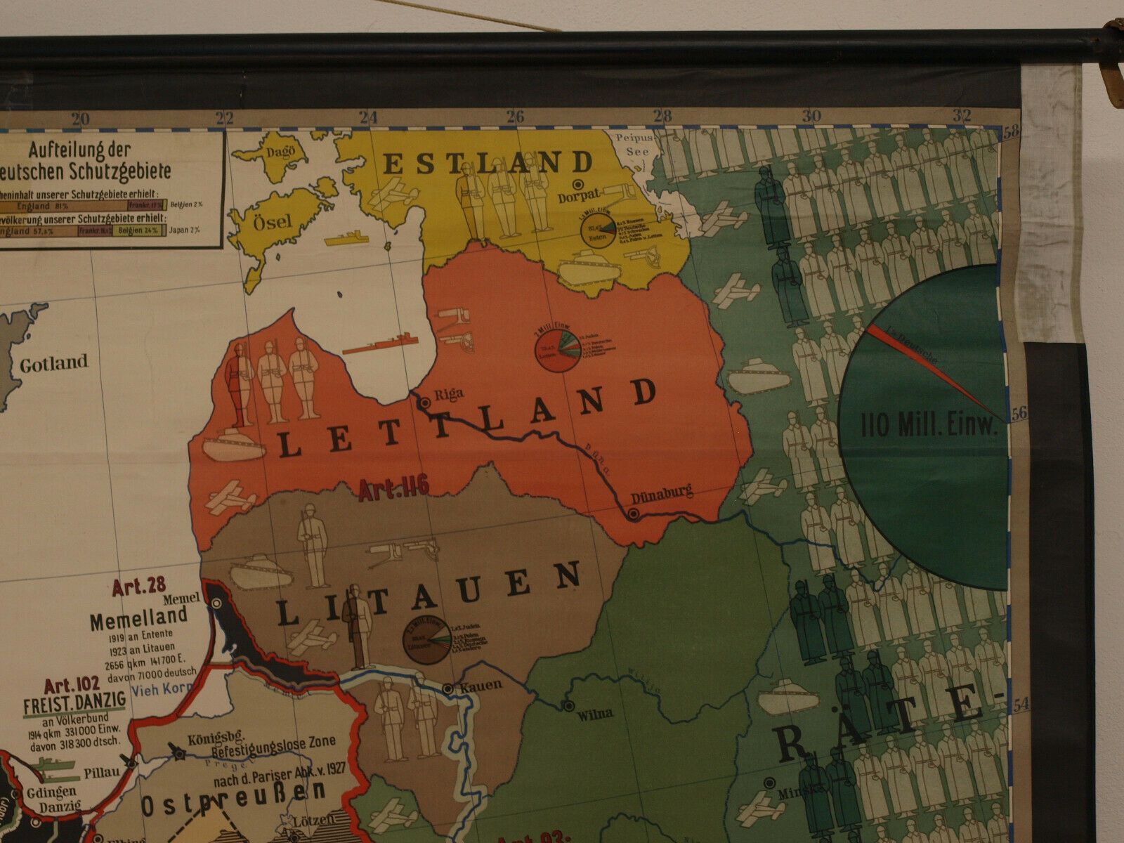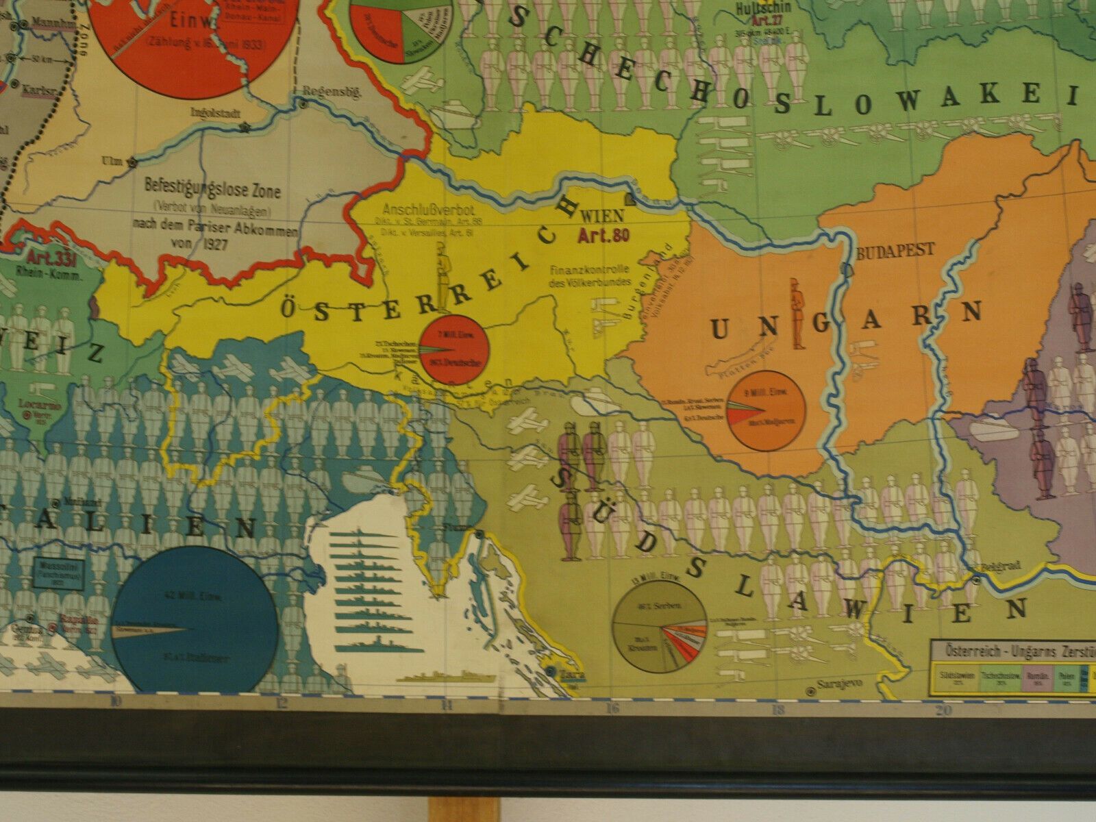 Wandkarte Das Diktat von Versailles Vertrag VS Fremdbestimmt 213x182 Druck: 1938