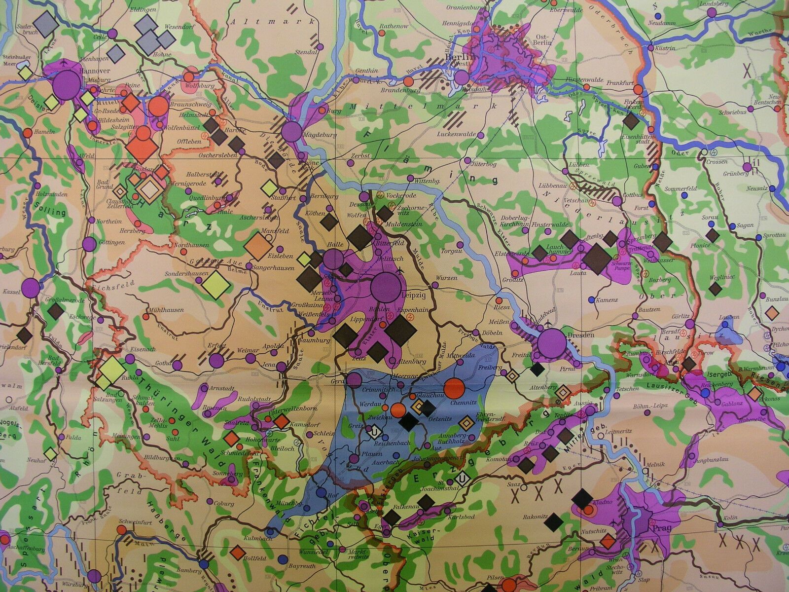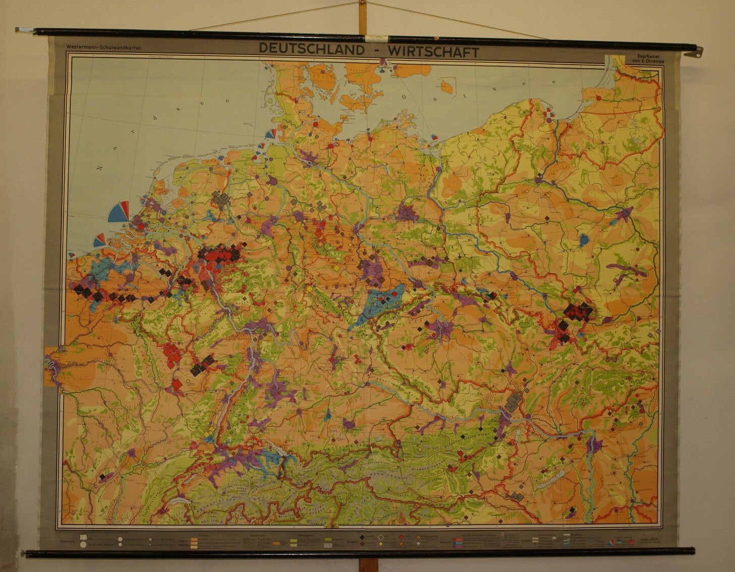 Wandkarte Deutschland Stahl Kohle Industrie 1937 1962 246x195cm school wall map