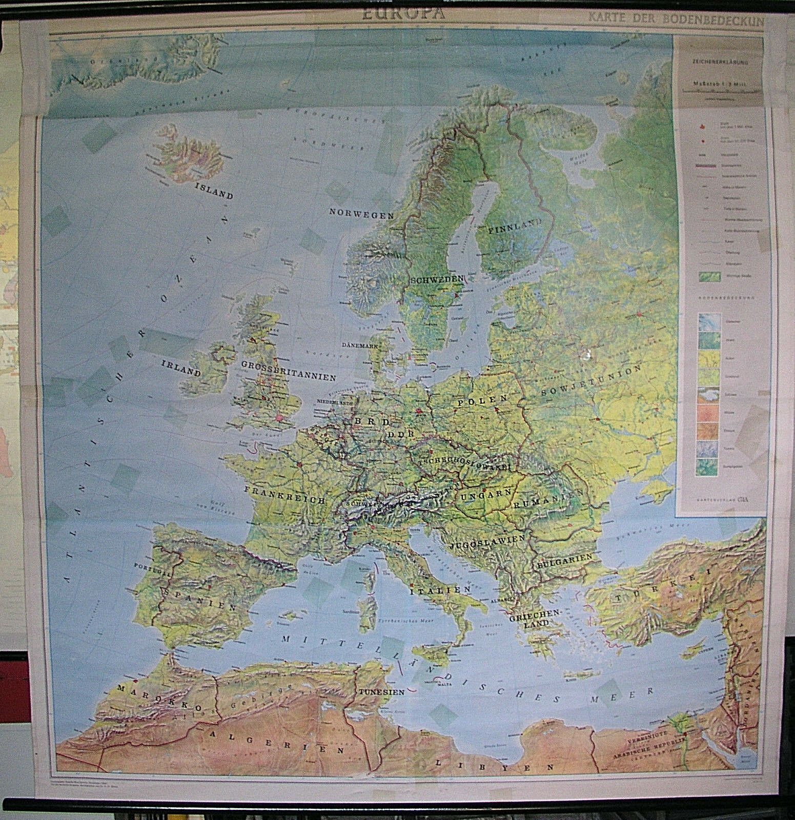 Wandkarte Europakarte Europe Orbit 171x176c 1969 vintage europe school wall map Siehe in der Liste unter Nr. 649 Europa Karte der Bodenabdeckung (W46) Detailfoto nicht von dieser Kartensammler (allumfassend...speziell deutsche bezahlbare Karten ab 1900) verkauft hier seine doppelten Exemplare der Sc