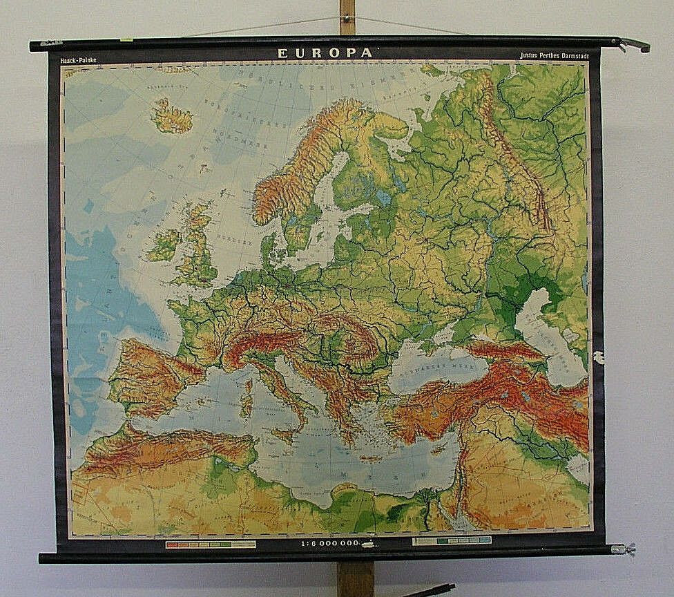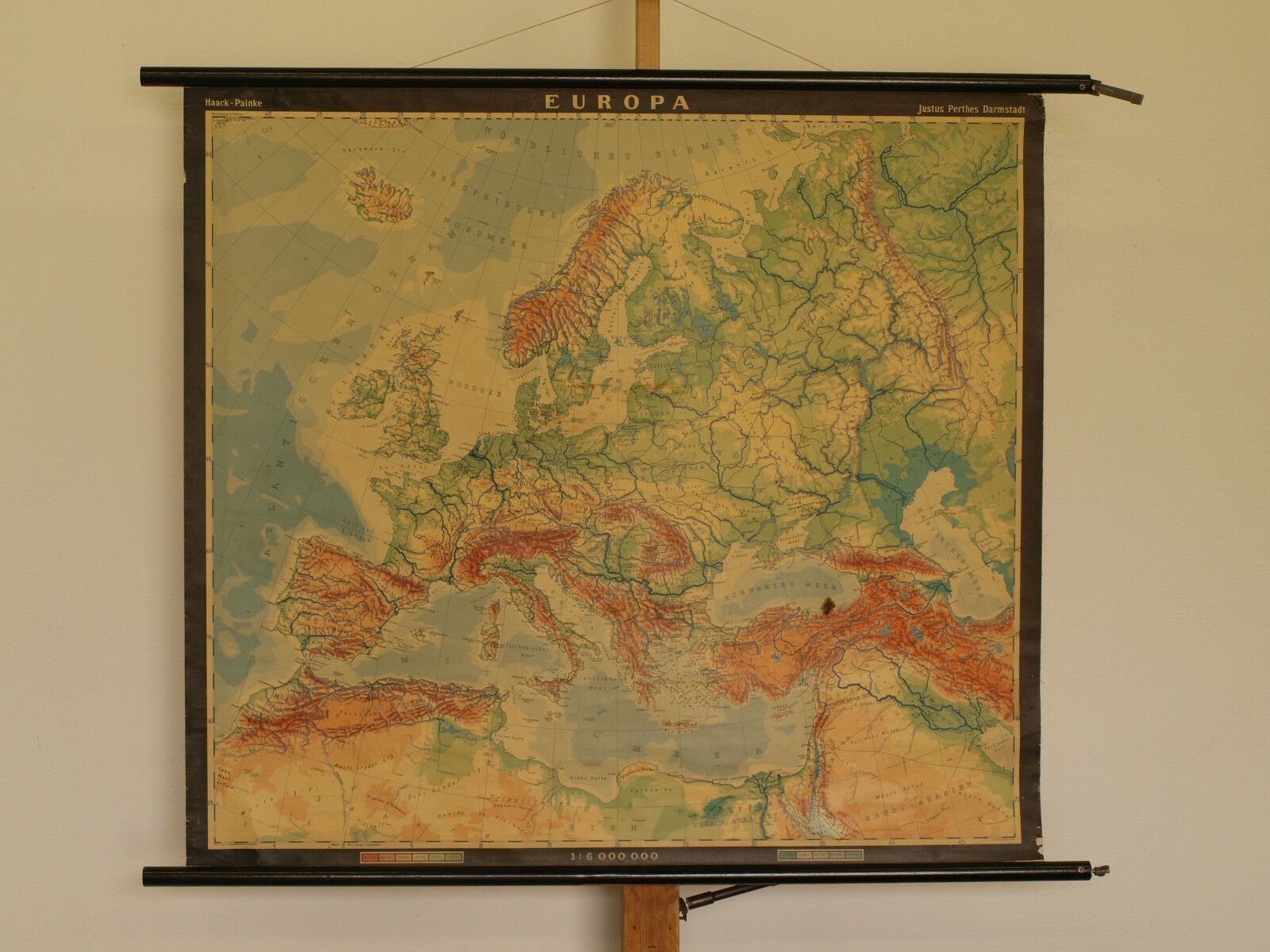 Wandkarte physisch Europakarte 104x94cm 1961 vintage europe old school wall map