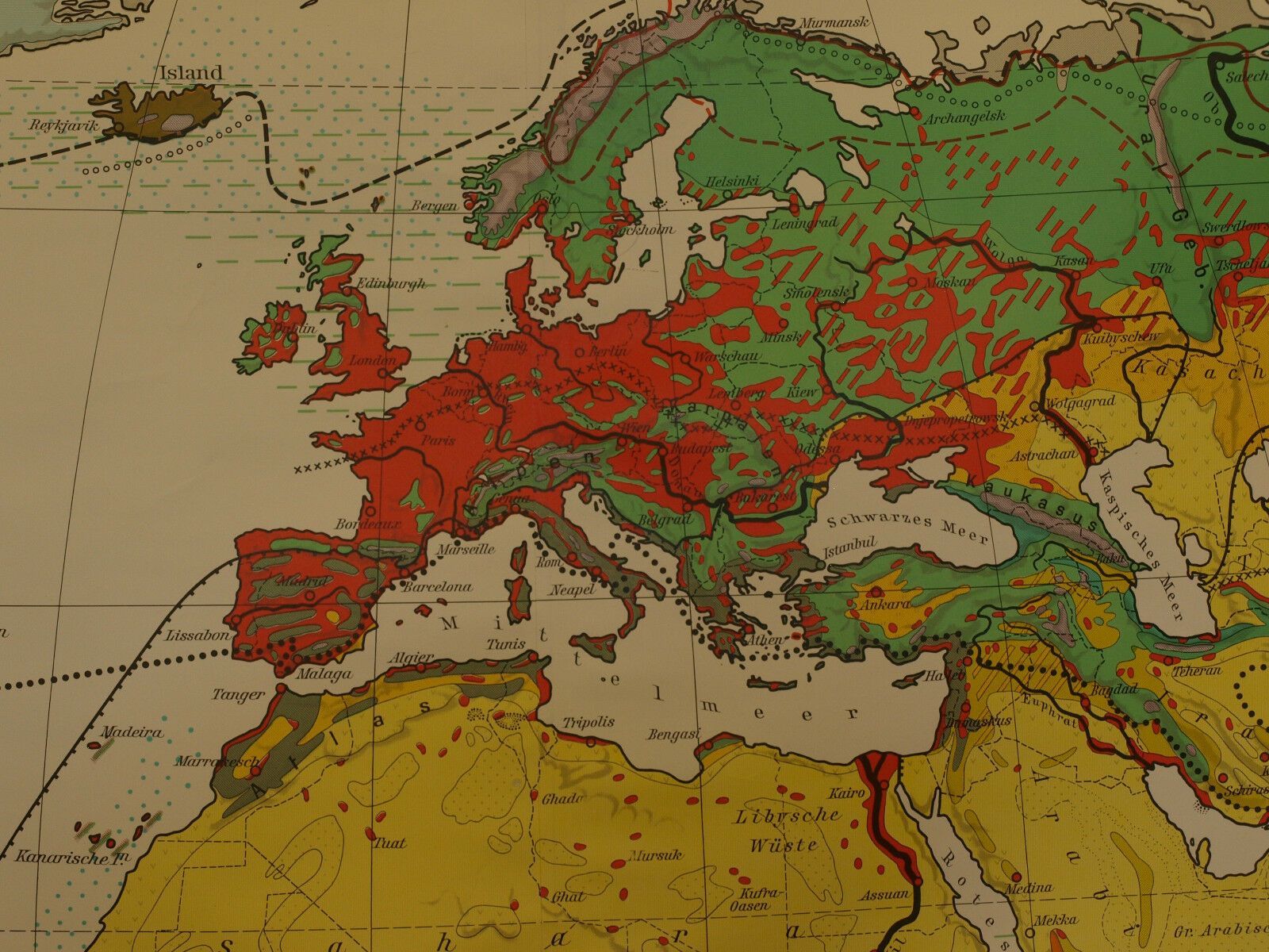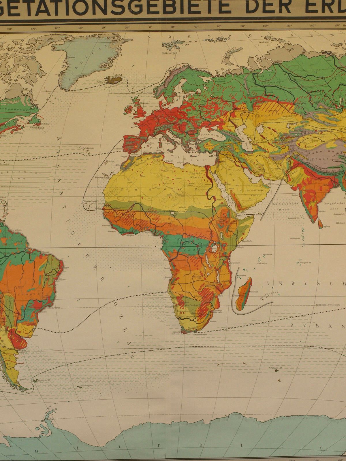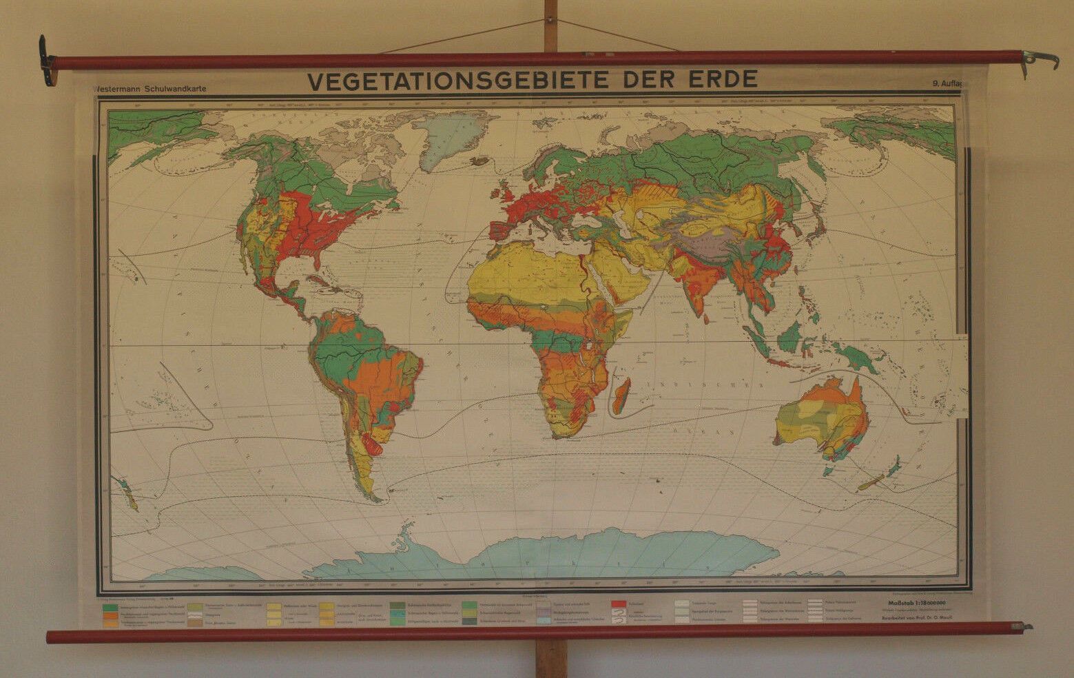 Wandkarte schöne alte Weltkarte Vegetationsgebiete 202x124cm vintage map 1975