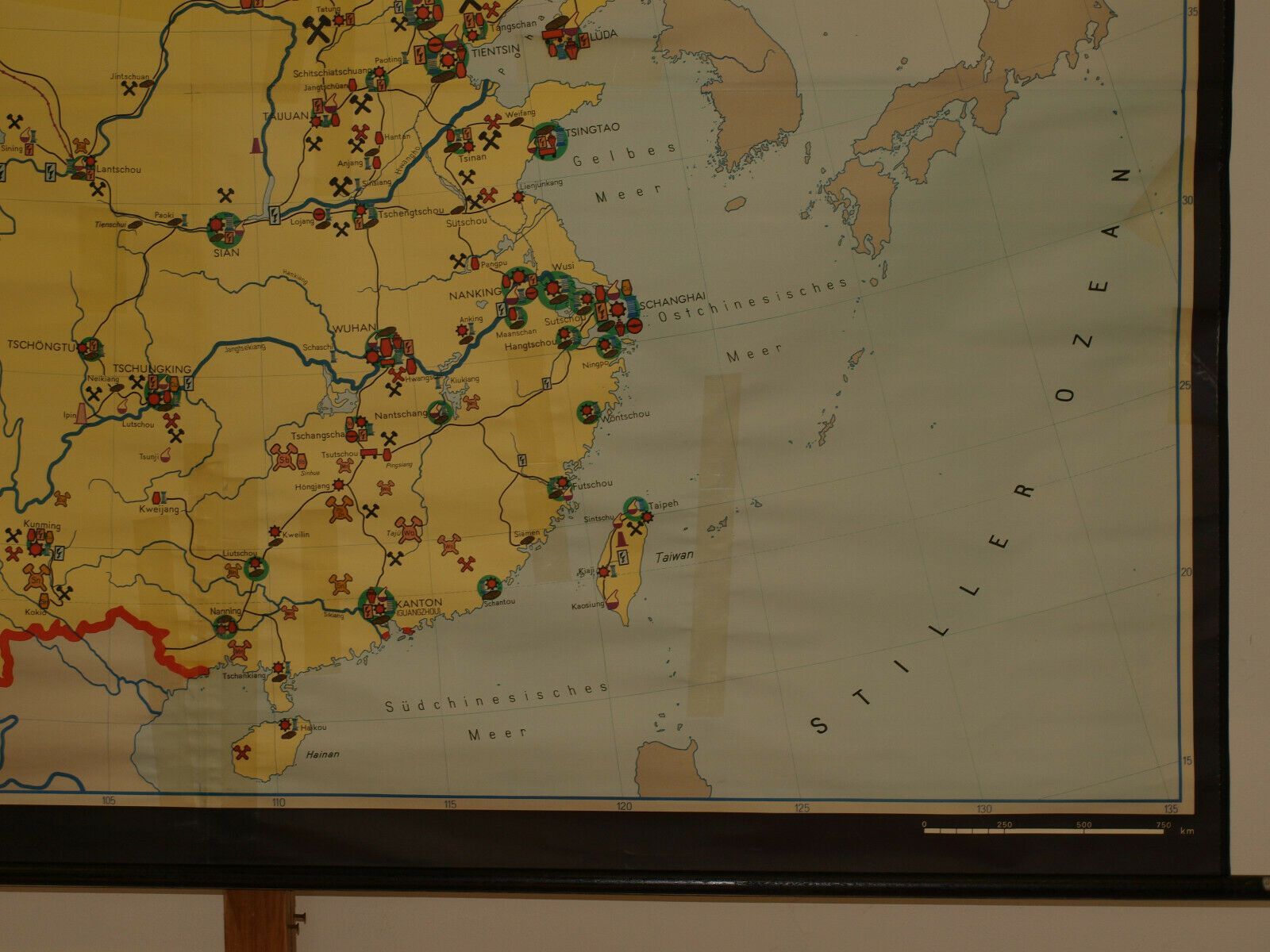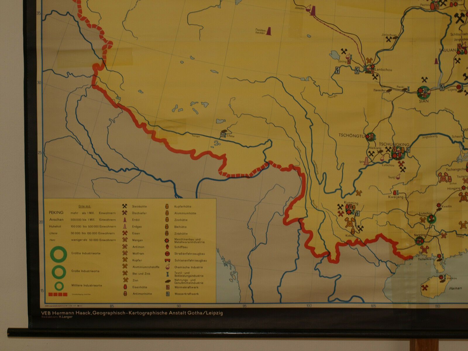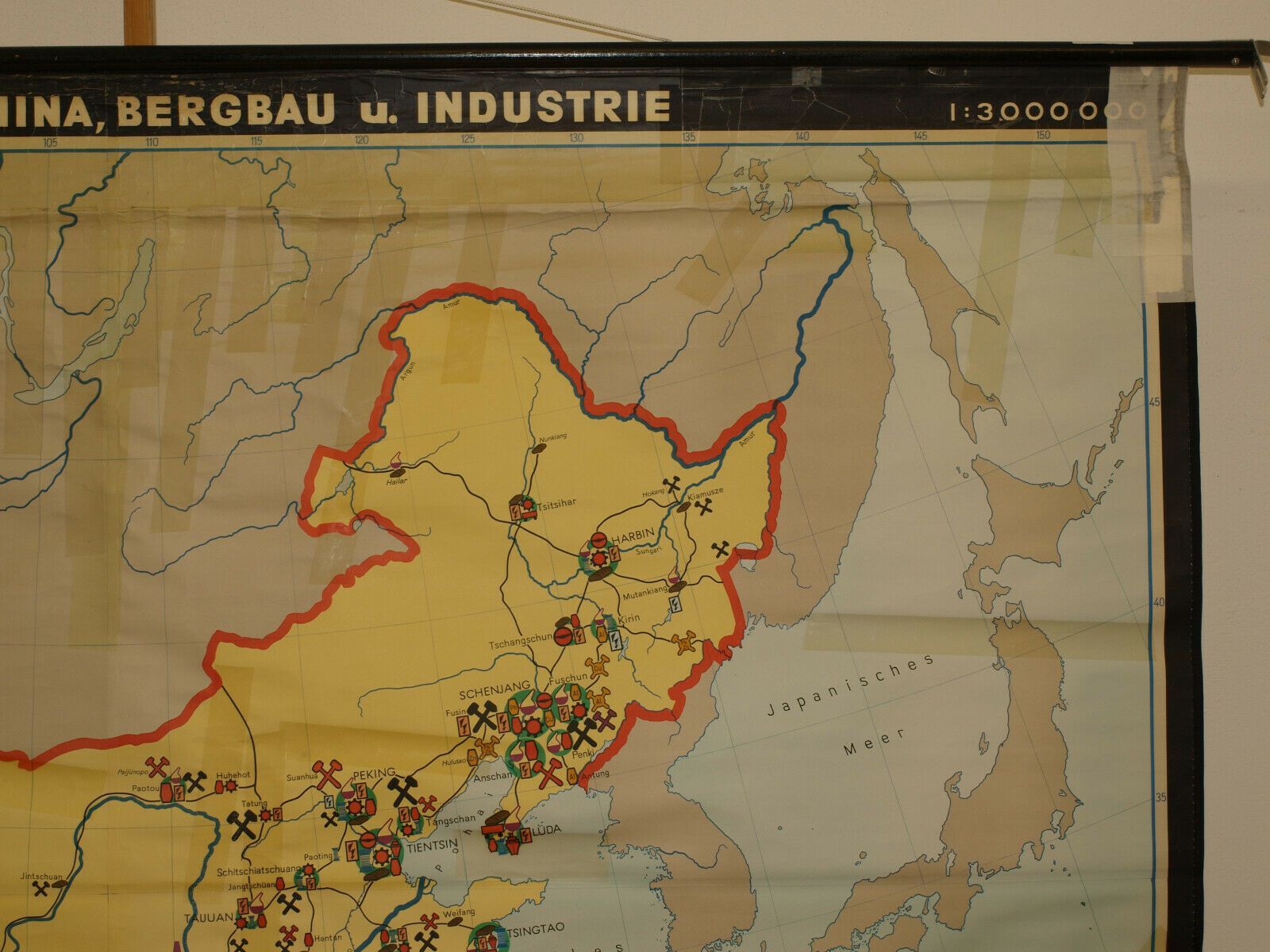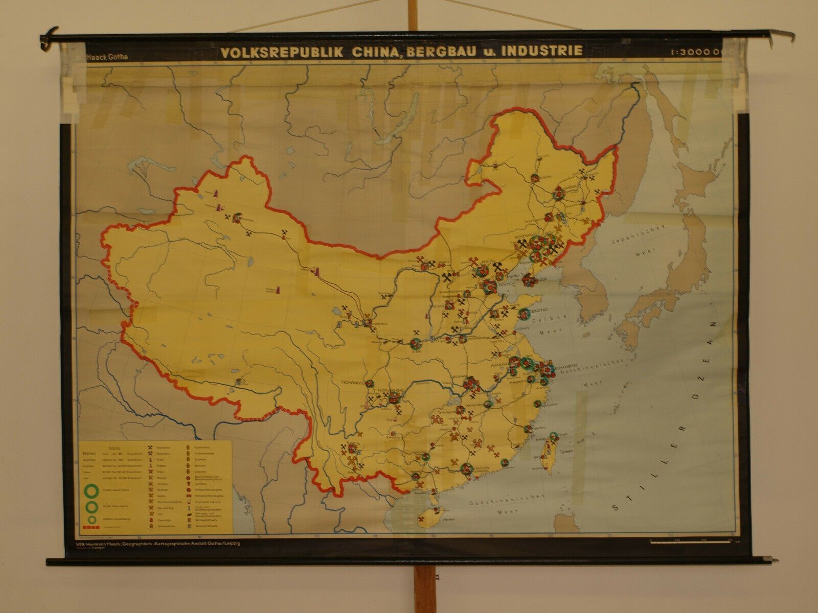 Wandkarte Schulwandkarte China Bergbau und Industrie DDR 215x162cm vintage 1968