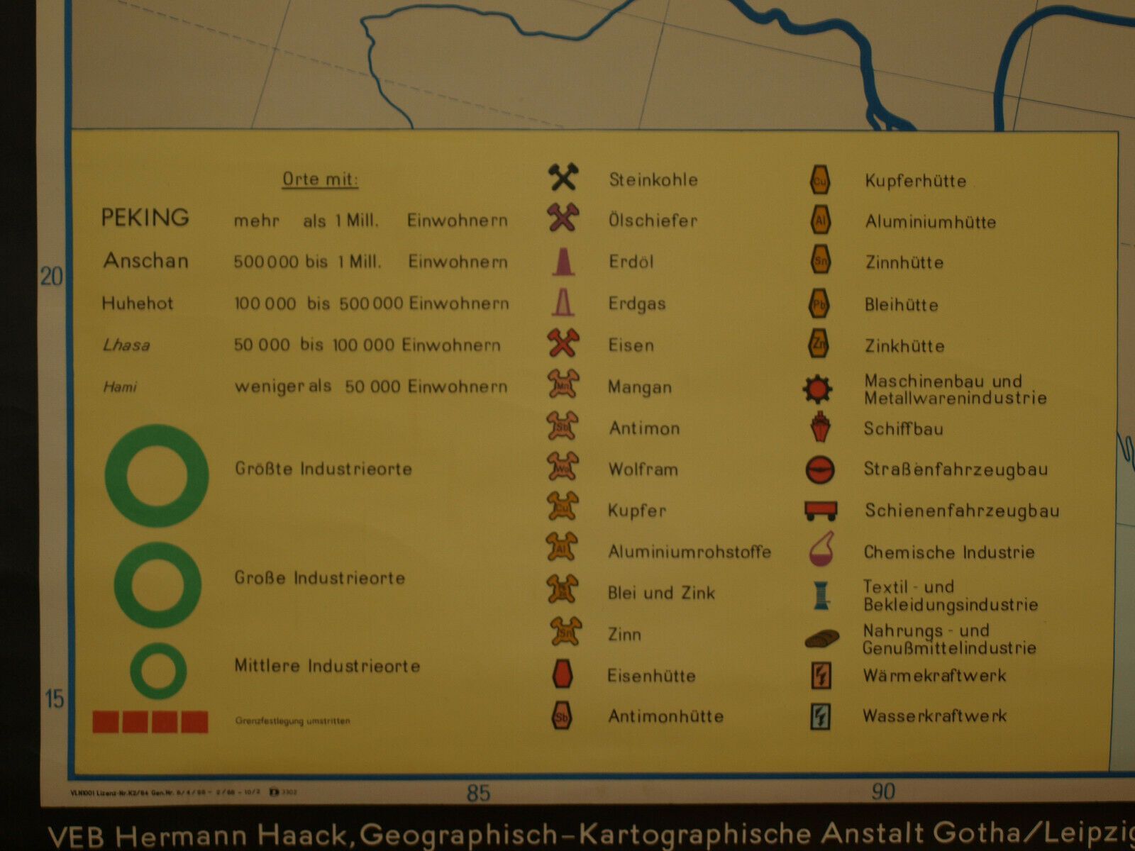 Wandkarte Schulwandkarte China Bergbau und Industrie DDR 215x162cm vintage 1968 Siehe in der Liste unter Nr1044 Volksrepublik China, Bergbau u. Industrie (KV669) 1. - 7. Bild , kein Bild von typgleicher Karte zum Vergleich hier beigefügt Kartensammler (allumfassend...speziell deutsche bezahlbare Kar