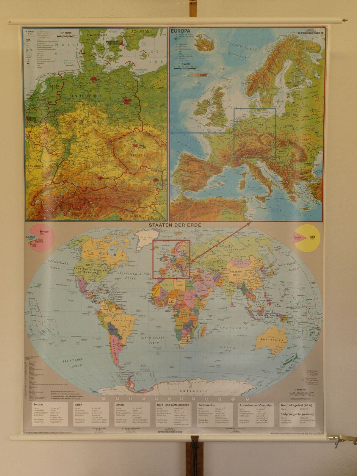 Wandkarte Weltkarte Europakarte Deutschlandkarte Alpen 115x152cm 1993 vintage