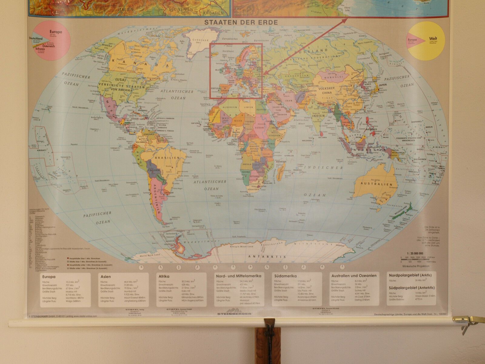 Wandkarte Weltkarte Europakarte Deutschlandkarte Alpen 115x152cm 1993 vintage Siehe in der Liste unter Nr. 533 Staaten der Erde (KU907) 1.-4. Bild Kartensammler (allumfassend...speziell deutsche bezahlbare Karten ab 1900) verkauft hier seine doppelten Exemplare der Schulwandkarten ( Wandkarte Wandka