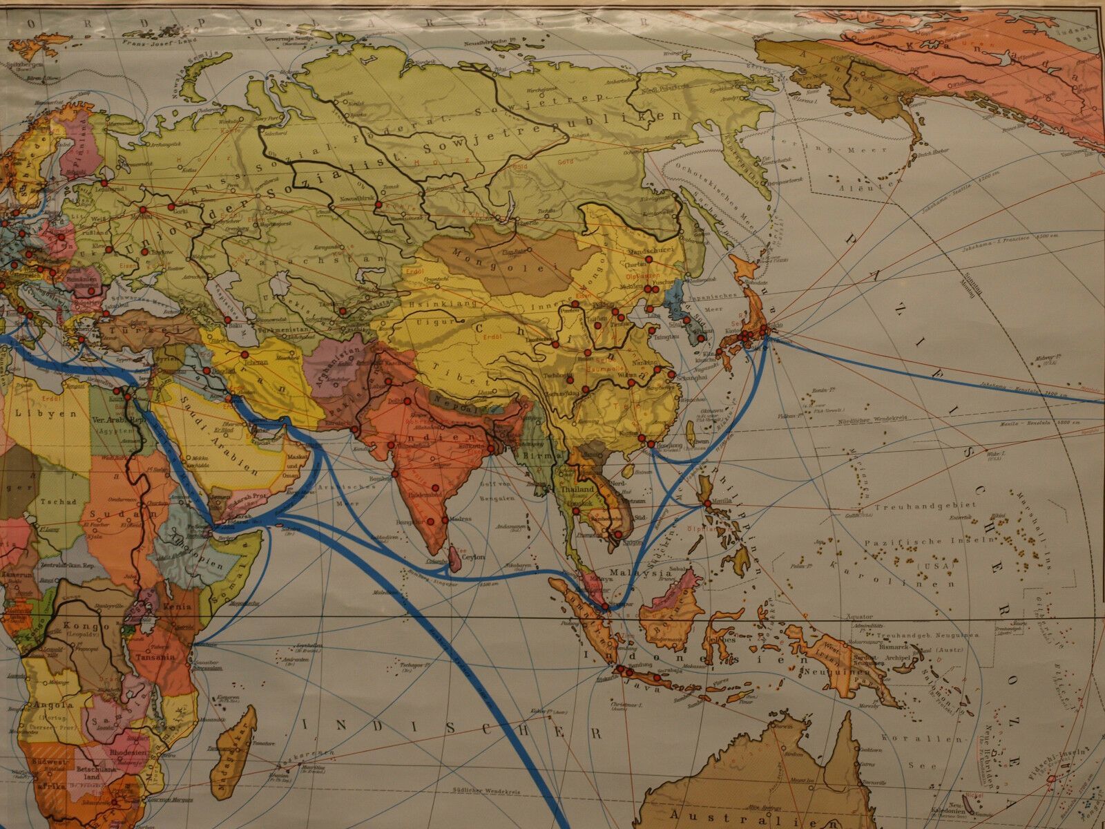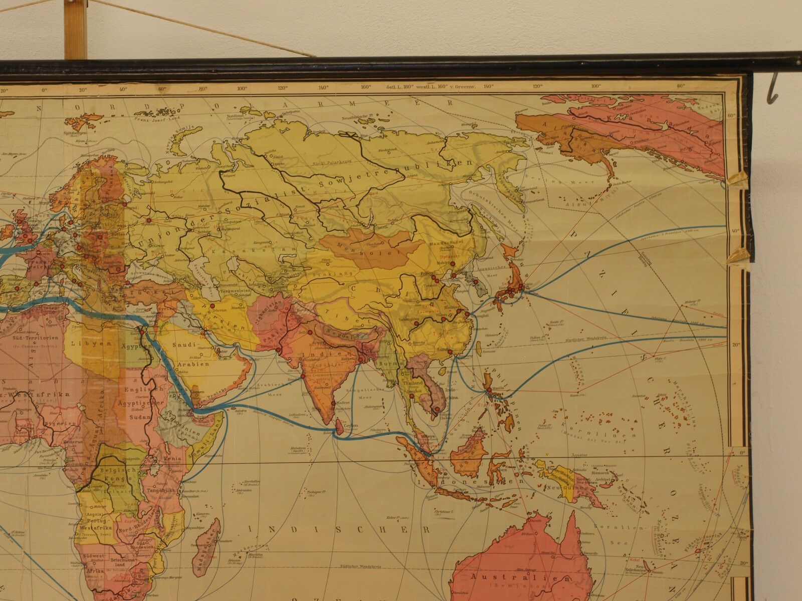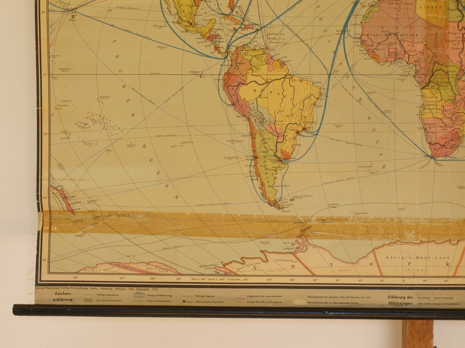 Wandkarte Weltkarte Staaten Erde 193x113 vintage states of the earth map 1953 Siehe in der Liste unter Nr. 517 Die Staaten der Erde (KV33) 1.-8. Bild ! 9.-12.Bild von typgleicher Karte hier beigefügt Kartensammler (allumfassend...speziell deutsche bezahlbare Karten ab 1900) verkauft hier seine doppe