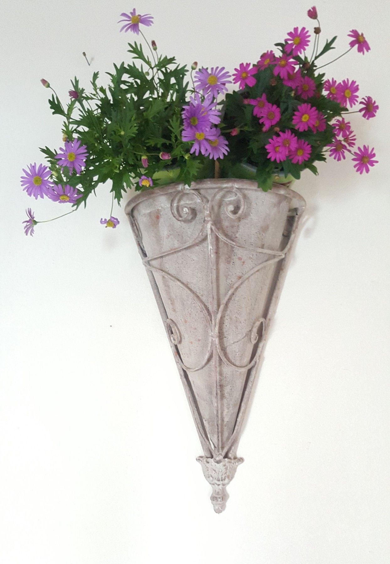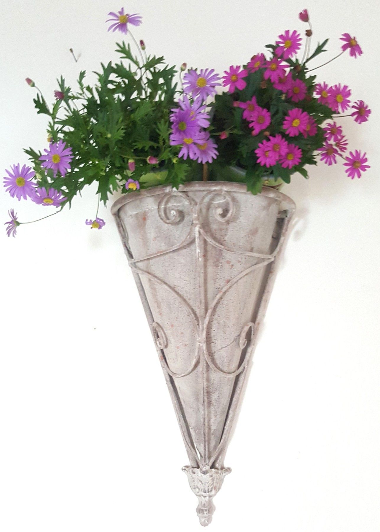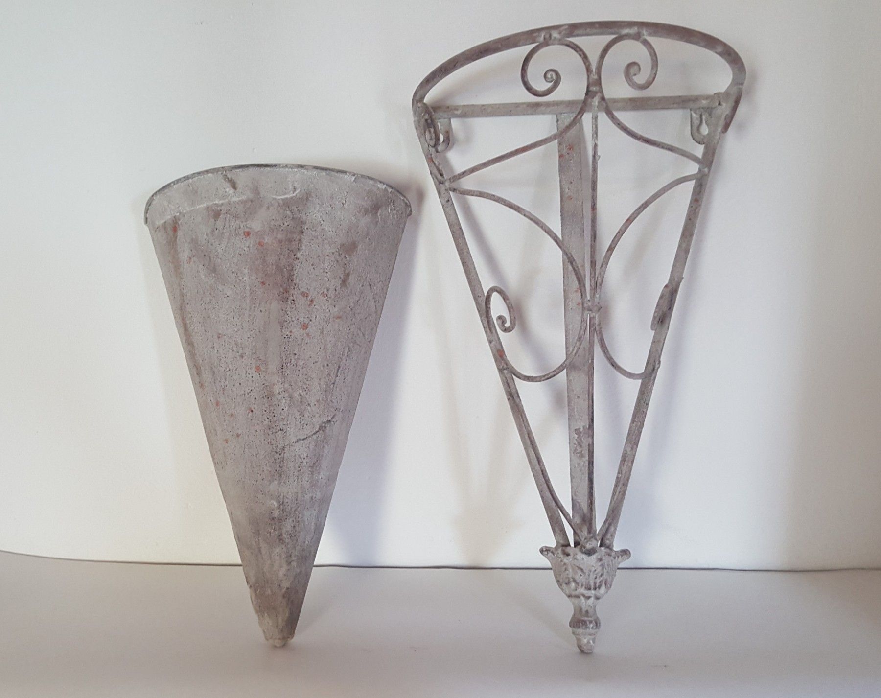 Wandkorb stabil grau metallkorb pflanztüte hängekorb 2teilig vintage blumenampel Set