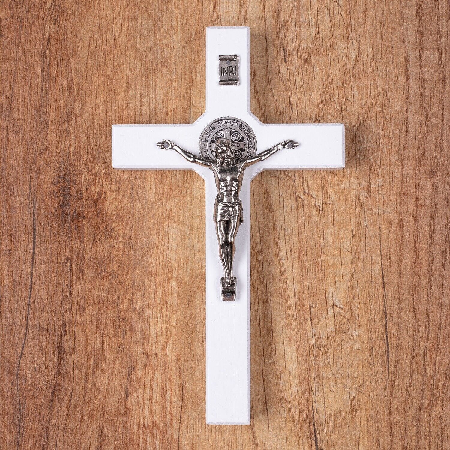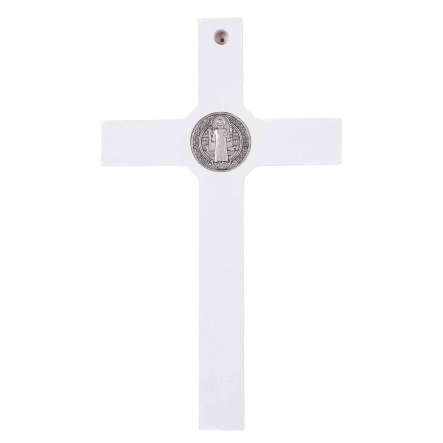 Wandkreuz Hängekreu Kreuz des Heiligen Benedikt mit dem Passionskreuz Weiß