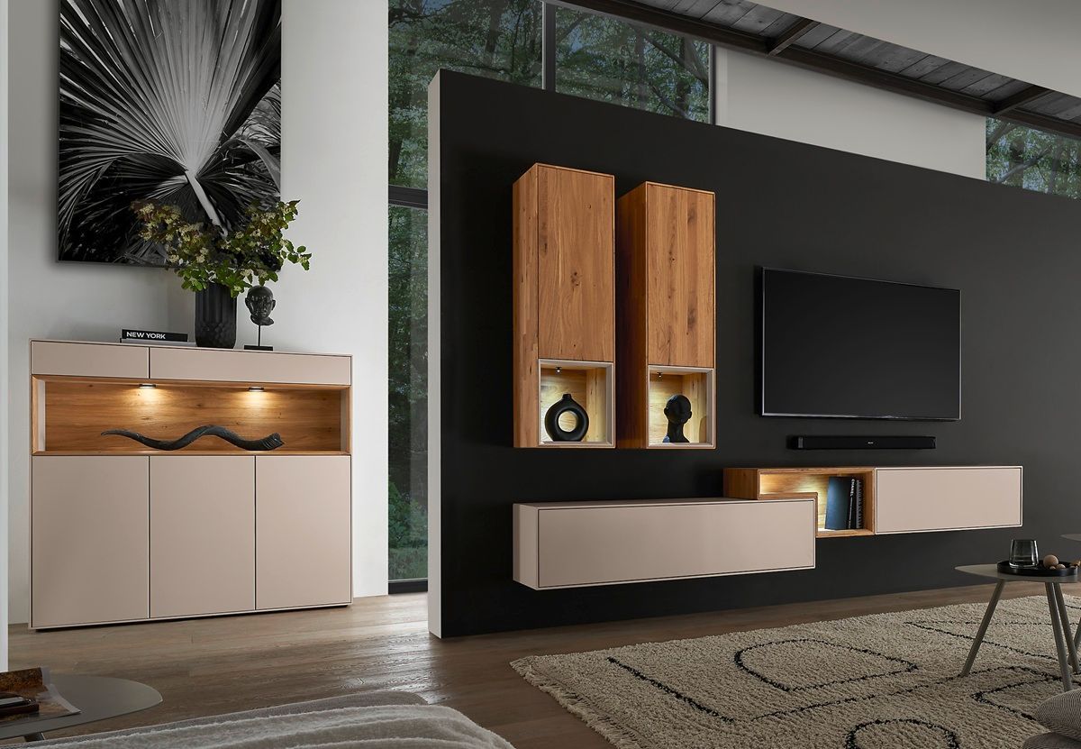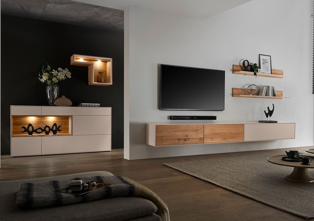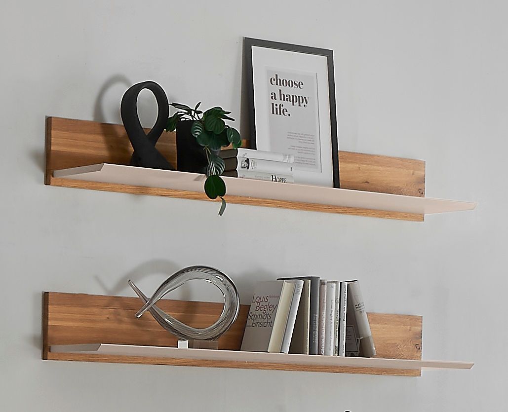 Wandregal 140cm 'Locarno' Wildeiche massiv & MDF creme