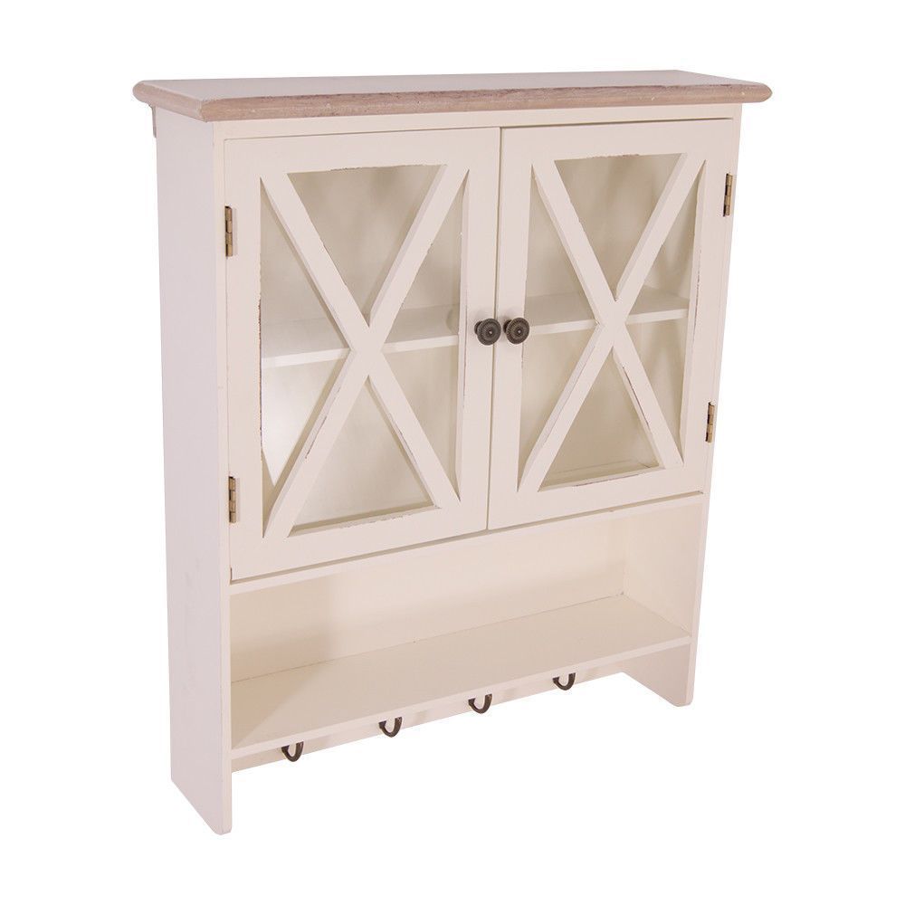 Wandregal Florence Landhaus Stil Hängeregal Küchenregal Holz Vintage Look creme-weiß