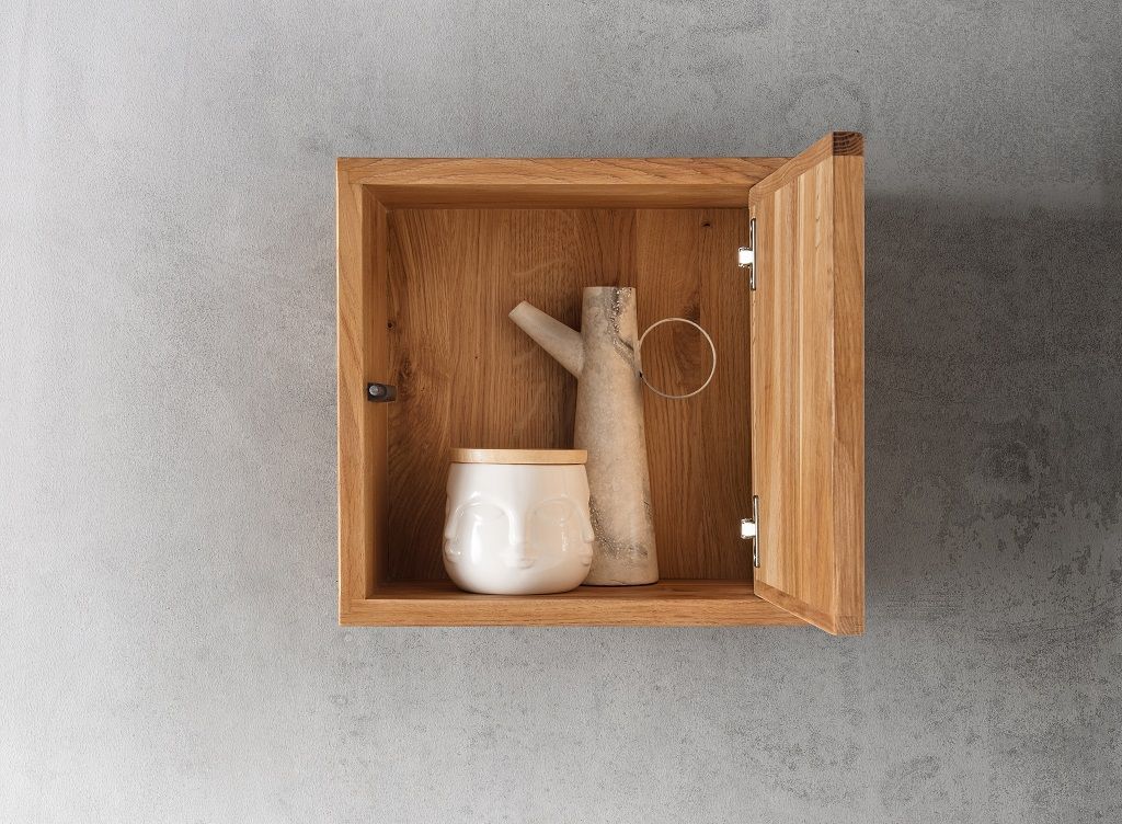 Wandregal mit Holztür 34x34cm 'Danzig II' Wildeiche massiv
