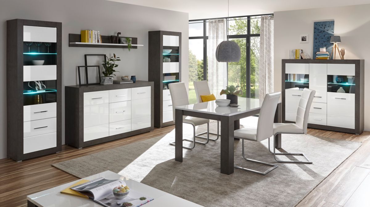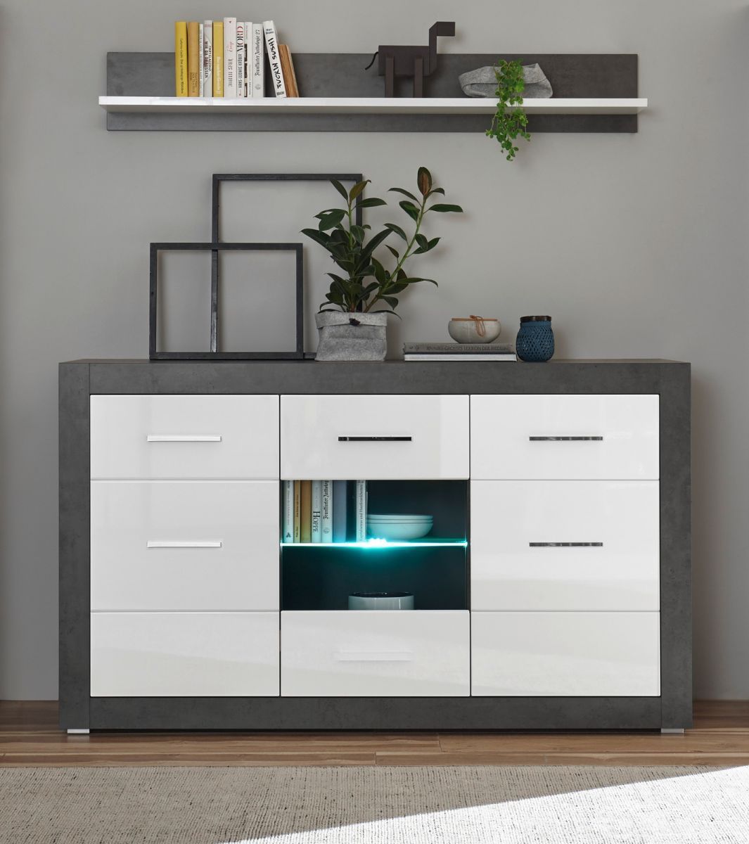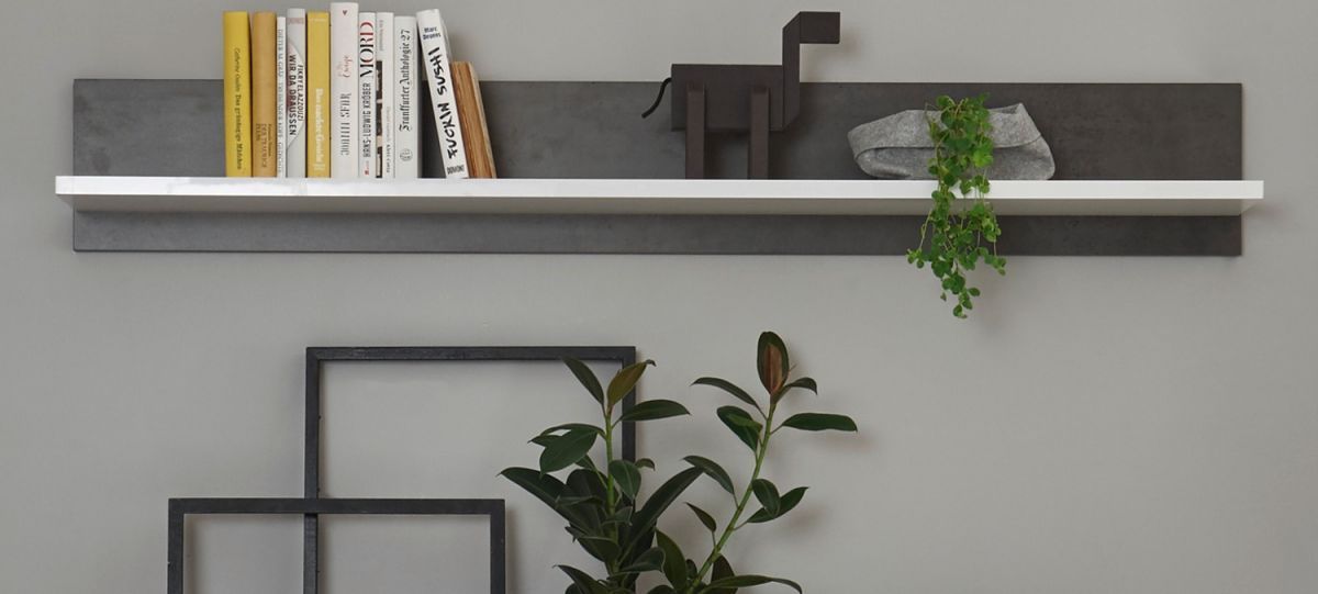 Wandregal Wandboard Bücherregal weiß Hochglanz Stone grau 150 cm Regal Briard