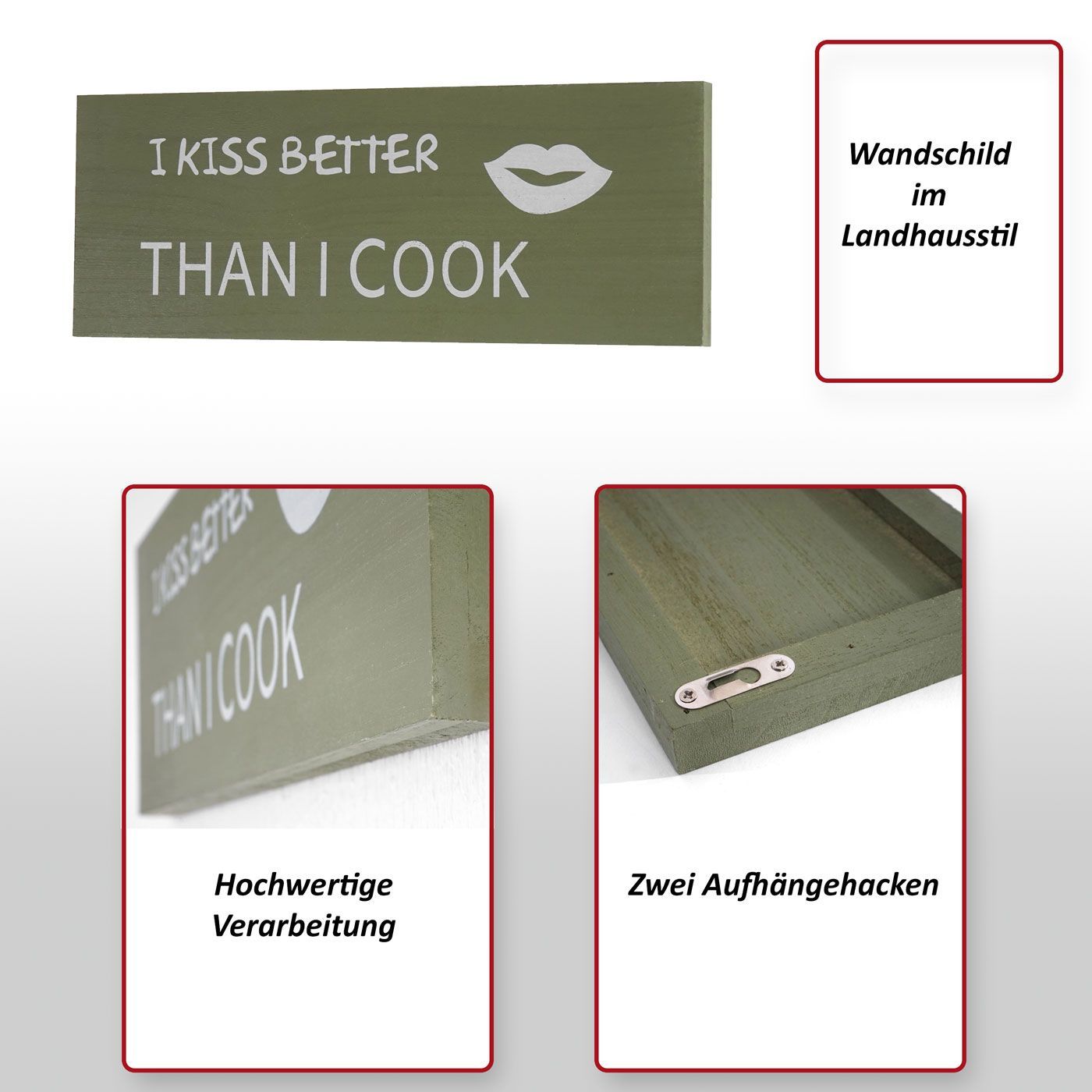 Mendler Wandschild Kiss, Dekoschild Holzschild, Shabby-Look 40cm Vintage