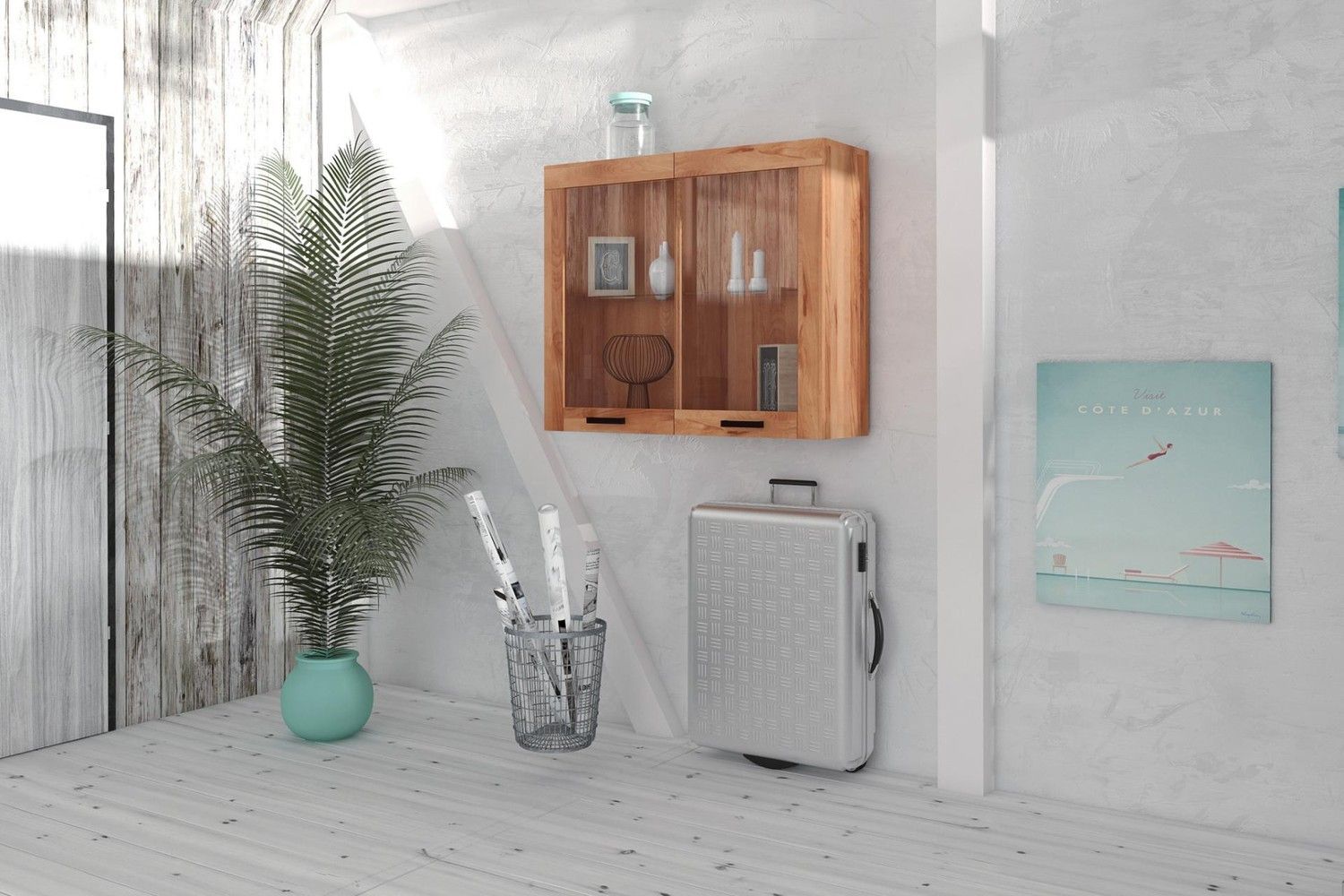 Wandschrank Ringo aus Kernbuche massiv 105x32x90 mit 2 Glastüren