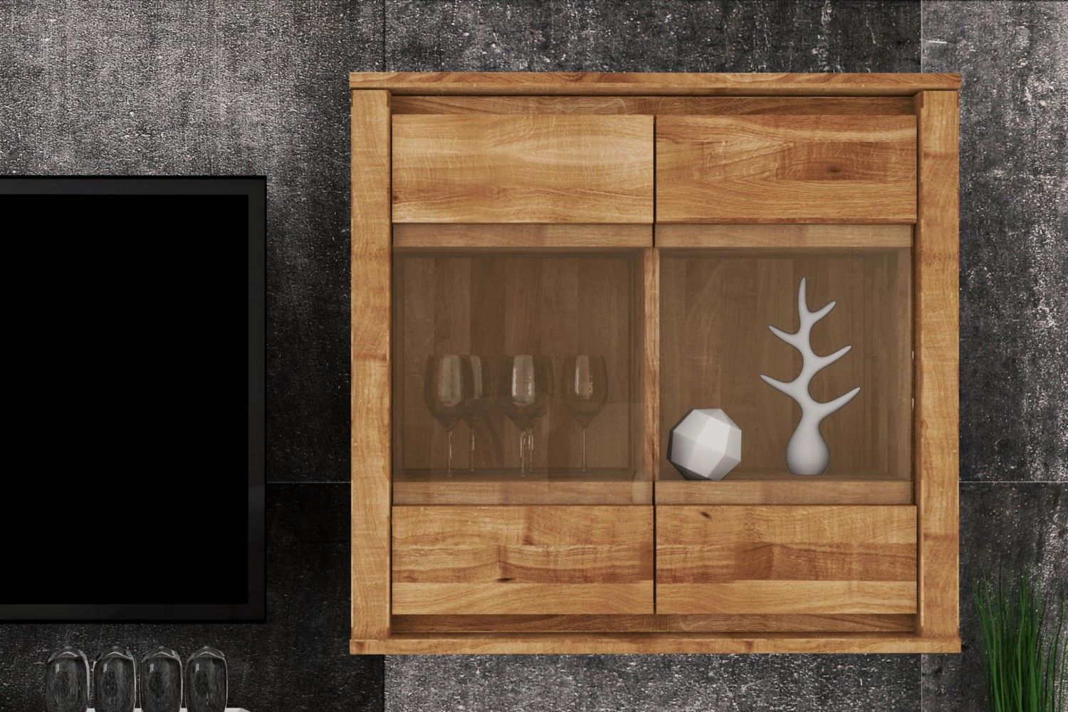 Wandschrank Tinci aus Wildeiche massiv 80x35x76 cm mit 2 Glastüren