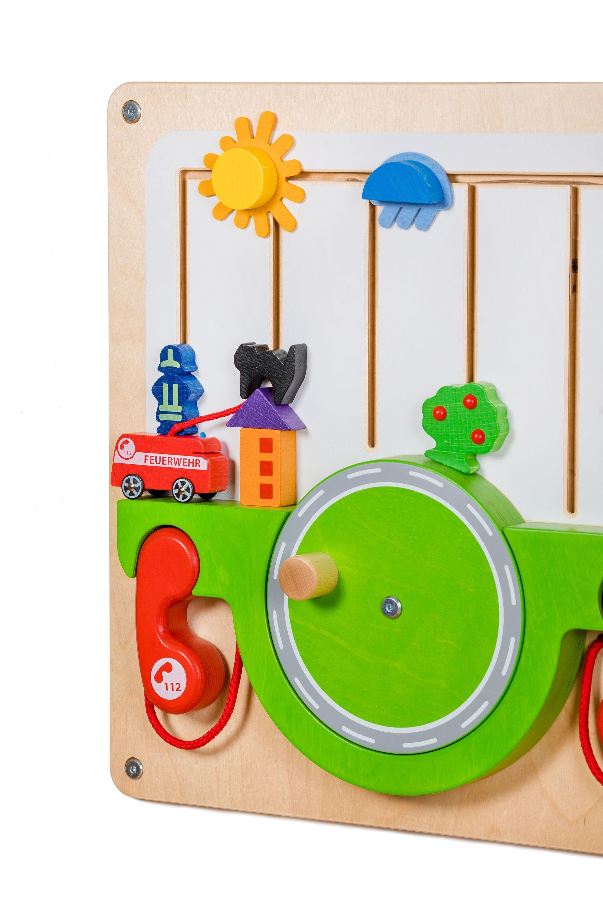 Wandspiel Feuerwehr BxHxT 48,5x8x48,5cm NEU Kugelbahn Holzbaukasten Mosaik Spie