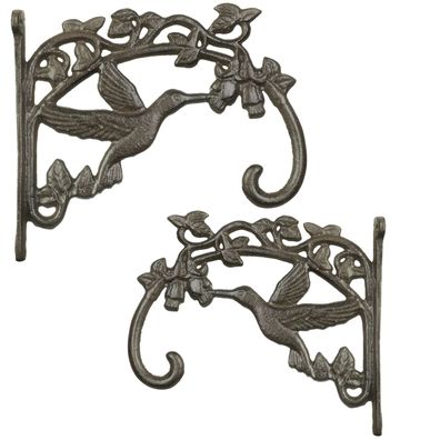 • 2er Set Wandhaken Kolibri Gusseisen Antik Braun 19,5 x 17 cm Wandhalter Haken für