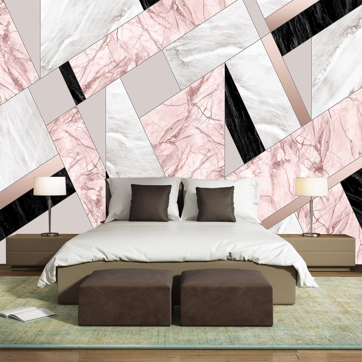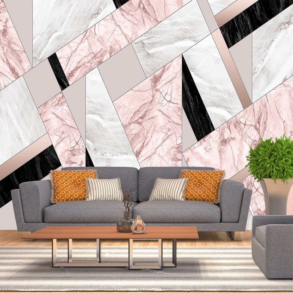 Wandtapete Marmor Weiß Rosa Geometrie Modern 3D Wandbild XXL 6298