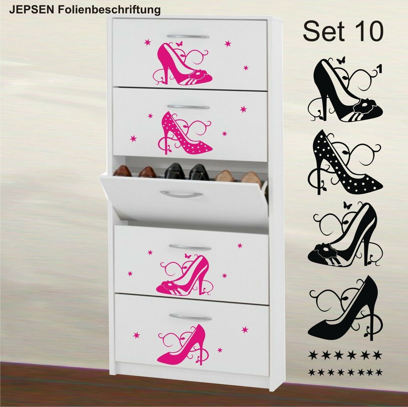 Wandtattoo 28 teilig Pumps Schuhschrank Aufkleber Set 10 Pömps High Heels Schuhe
