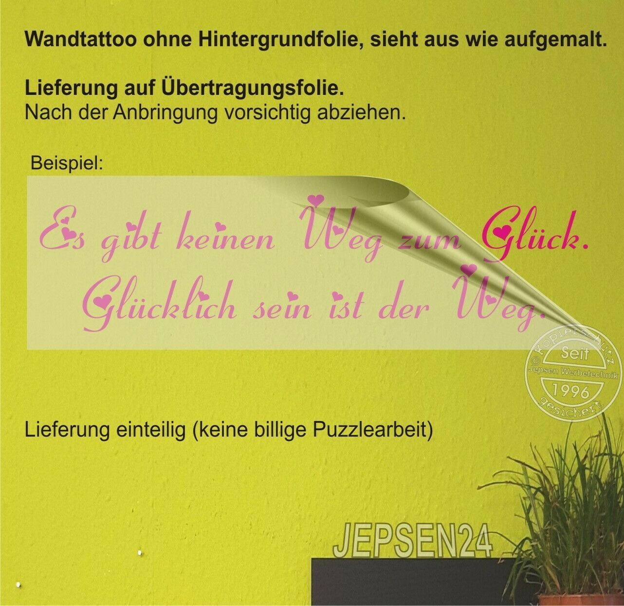 Wandtattoo - aúch eine tolle Geschenkidee Dein Wunschtext oder Zitat bis ca 120x45cm Größe. Bitte nach Kauf deinen Text, Schriftart und Farbe mittteilen (Schrift und Farbauswahl siehe Fotos). Vor Herstellung sende ich Dir eine Ansicht per Mail für evtuelle Änderungswünsche.