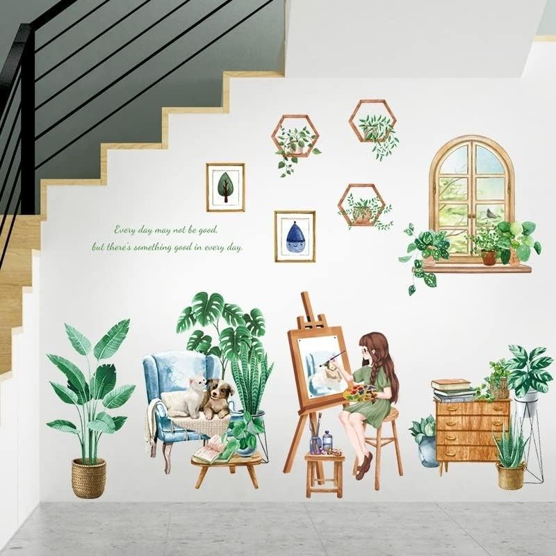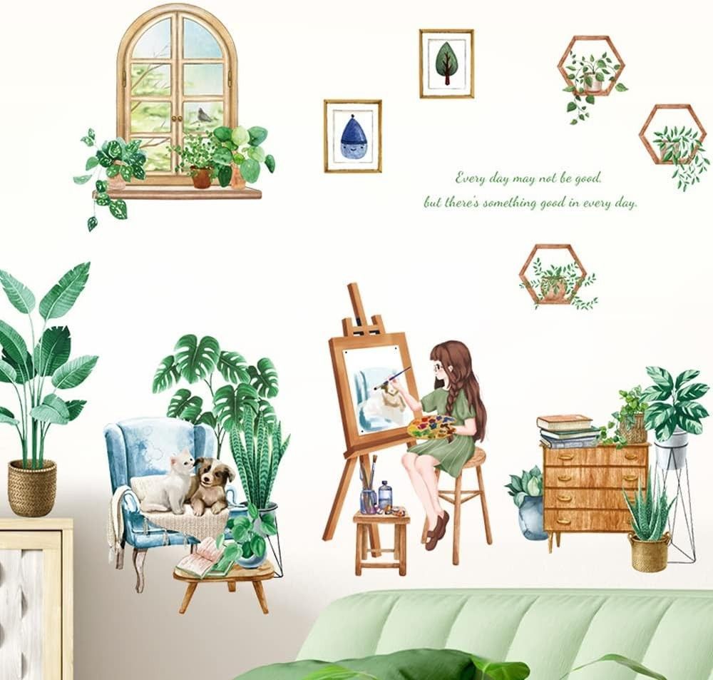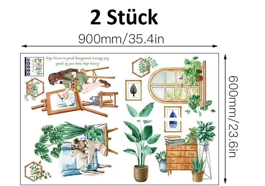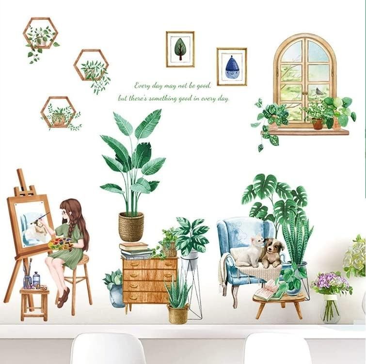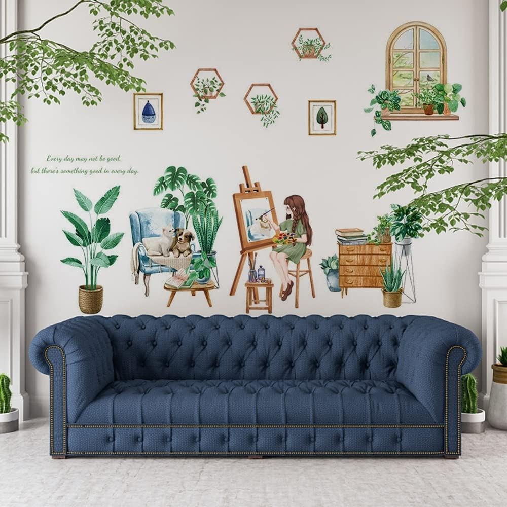 Fröhlich, kreativ und dekorativ: Dieses Wandtattoo mit Pflanzen- und Mädchen-Motiv bringt frischen Charme in dein Zuhause. Ob im Wohnzimmer, Schlafzimmer, Büro oder Kinderzimmer – die Kombination aus grünen Pflanzen, Fenster- und Sofa-Elementen verleiht jedem Raum eine lebendige Atmosphäre. Hi