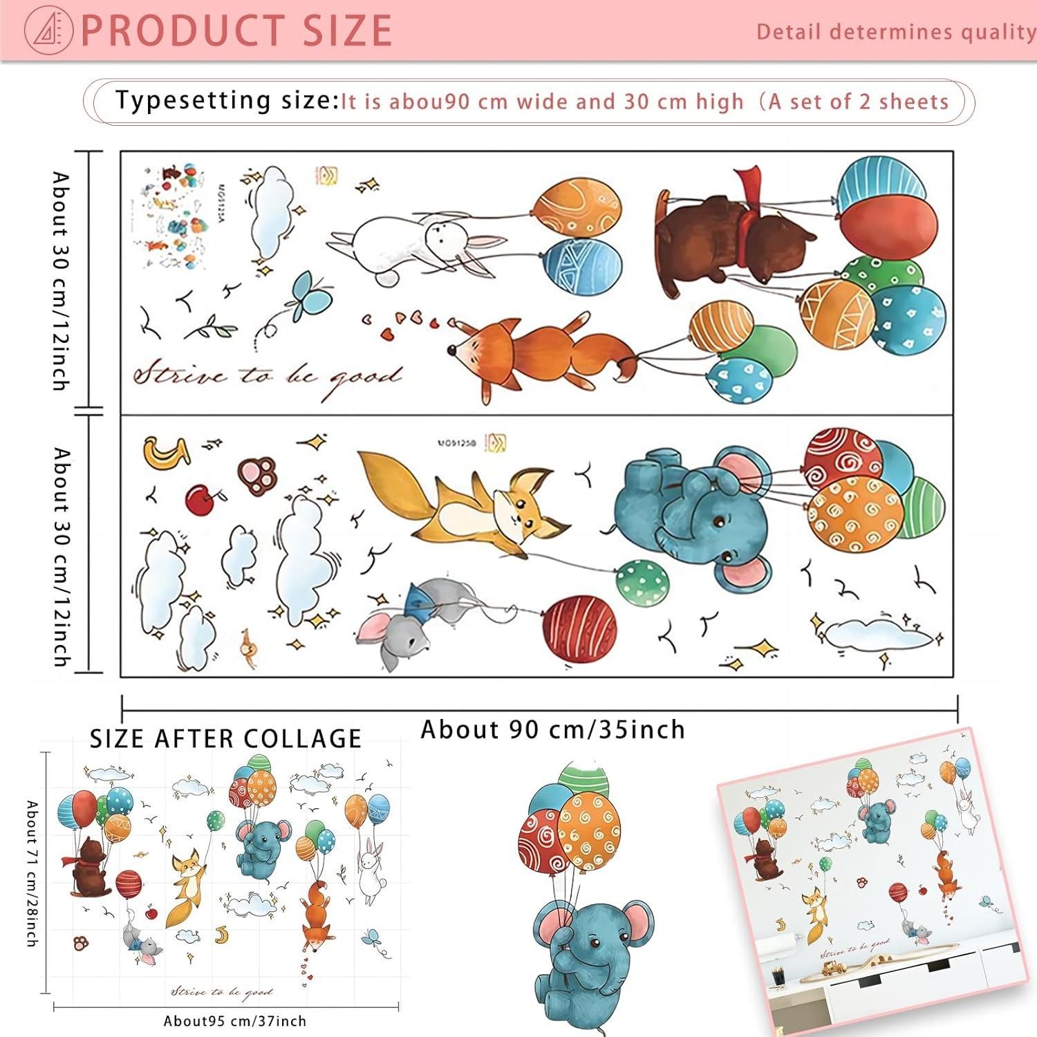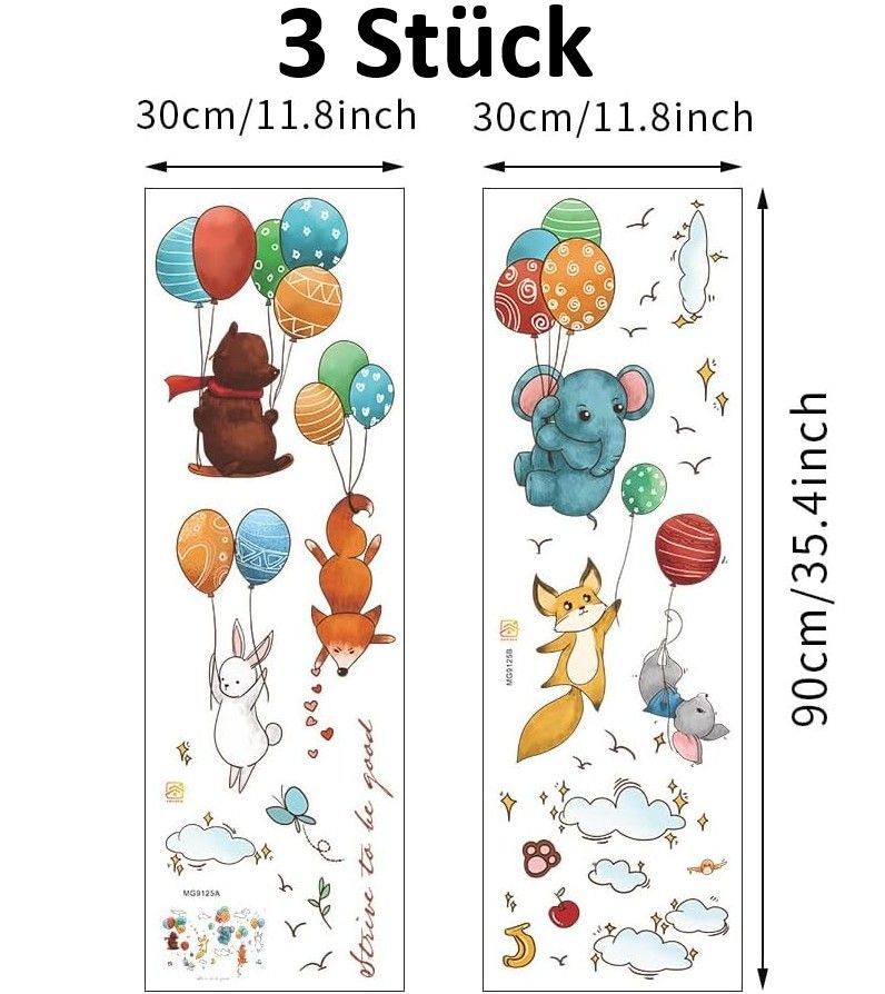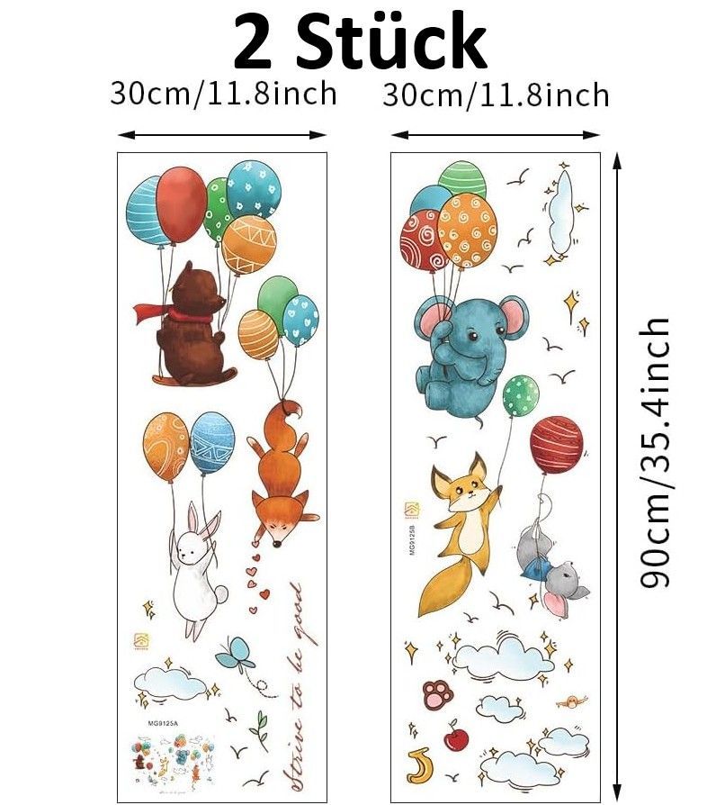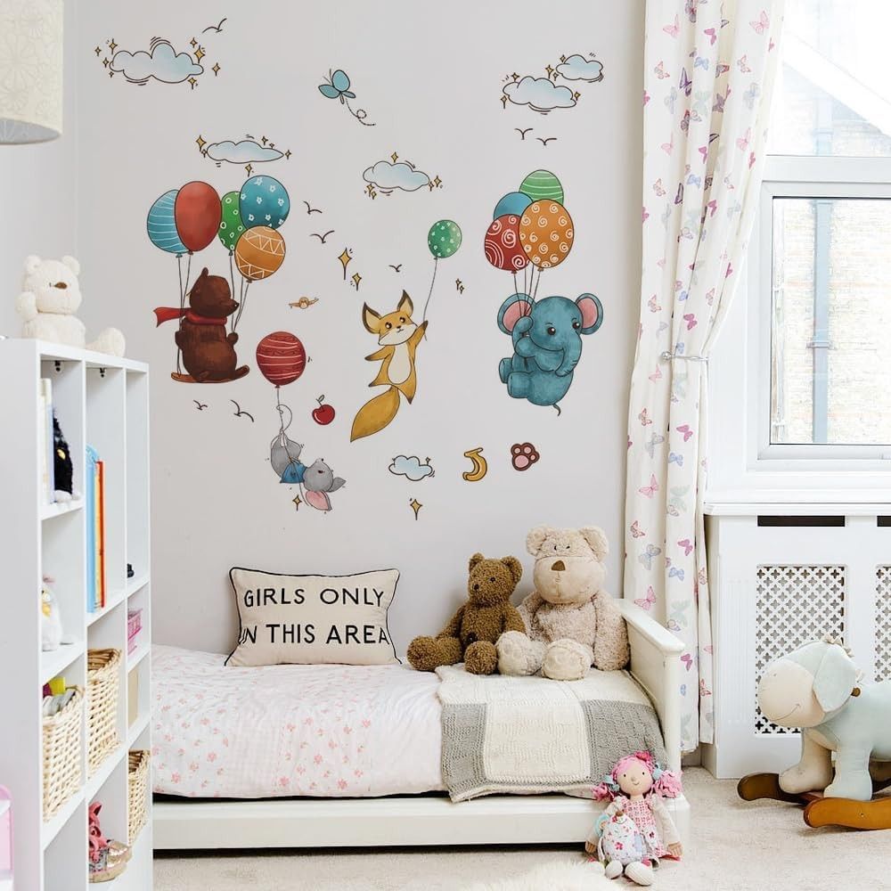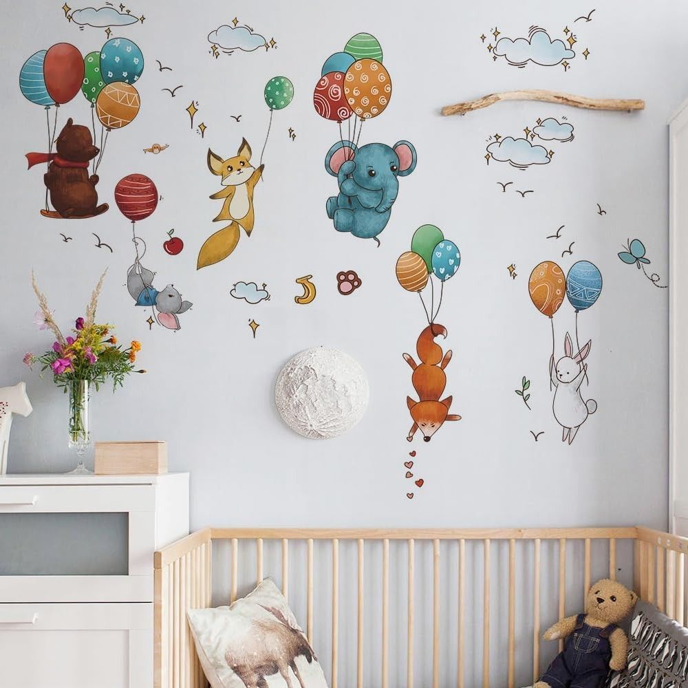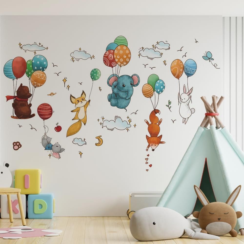 Wandtattoo Wandaufkleber Wandsticker für Kinderzimmer Waldtiere Ballon Wanddekoration