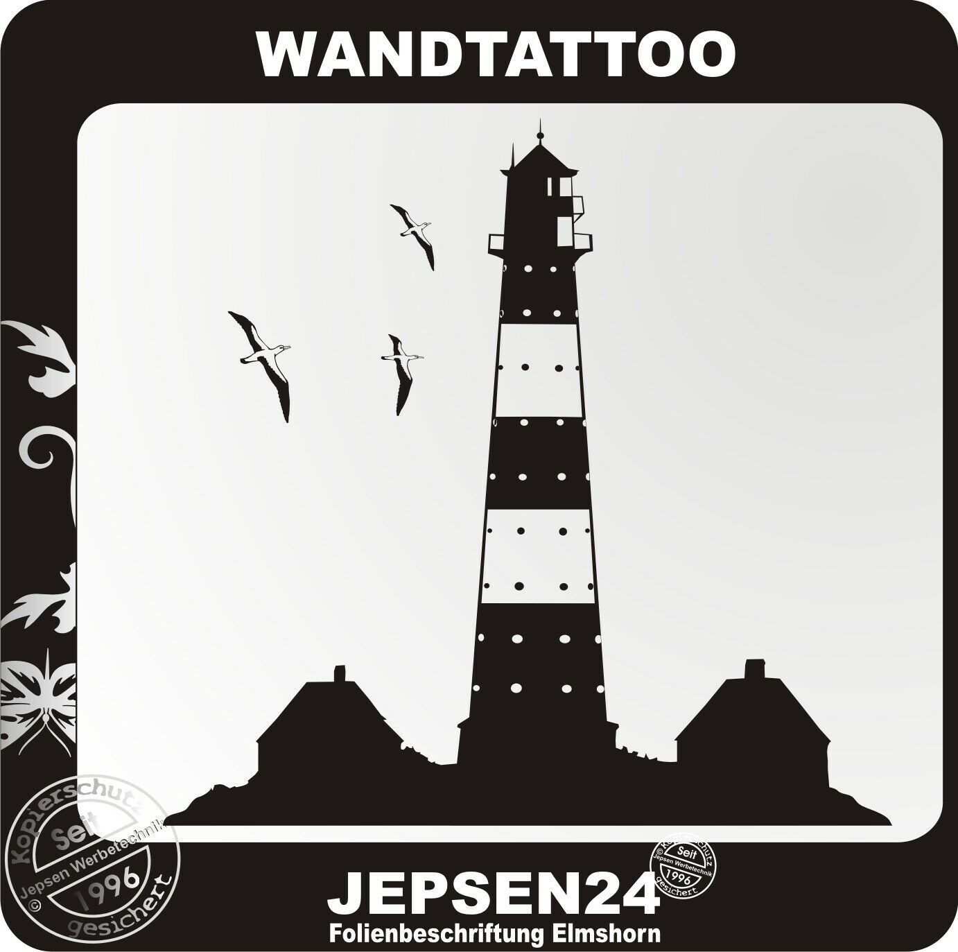 Maritimes Flair für Ihre Tapete Westerhever Leuchtturm L8 + 3 Möven Größe: 60x58cm (hxb) Farbe: Frei wählbar siehe Farbtabelle TIPP: Glanz Folie für glatte Oberflächen - matte Folie für Wandtattoos.