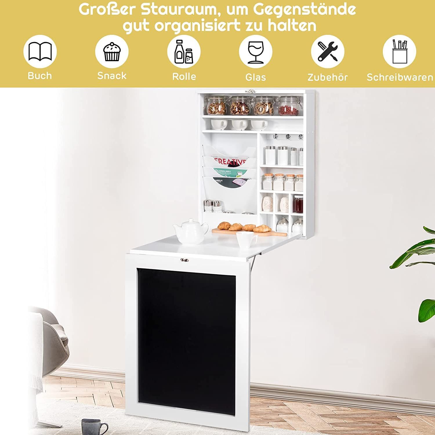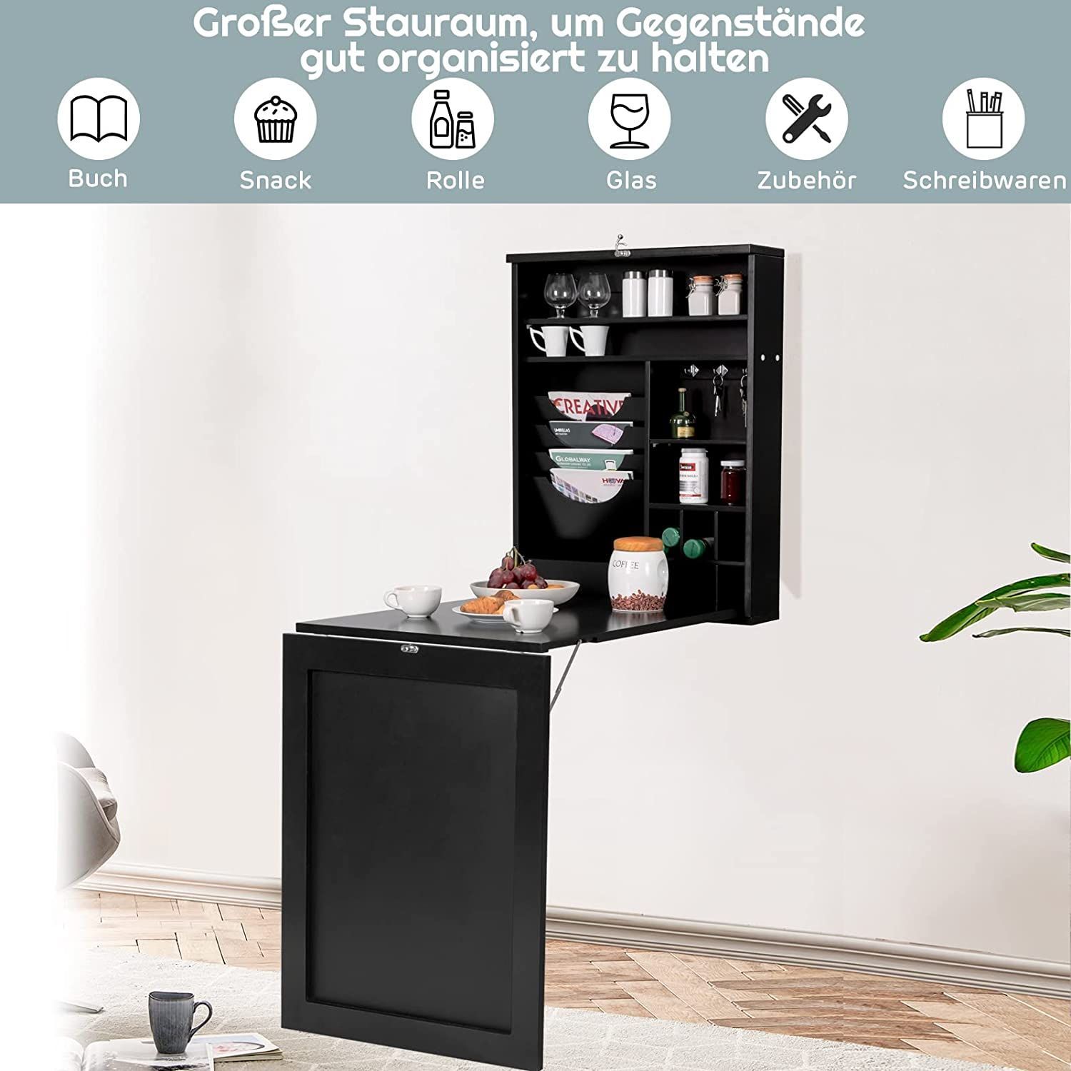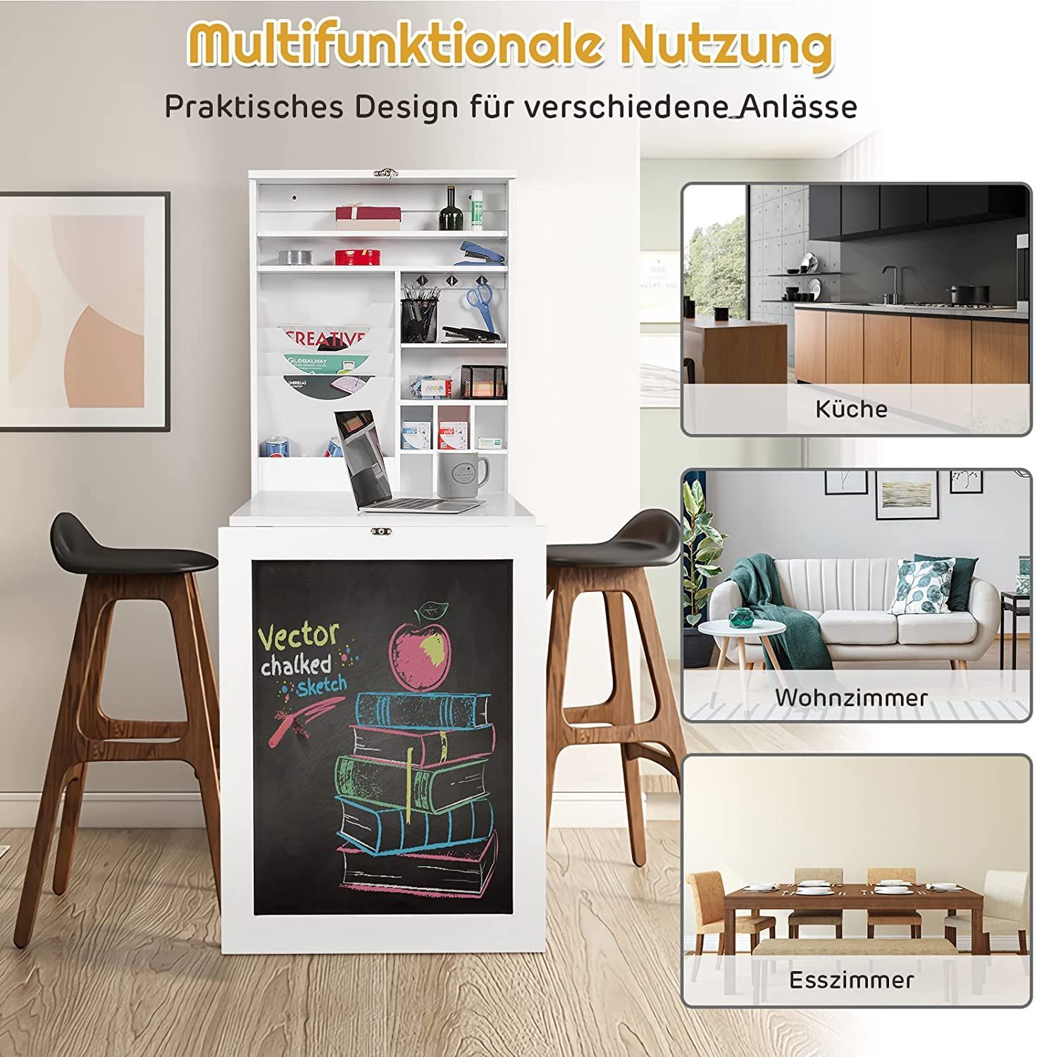 Wandtisch klappbar, Wandklapptisch mit Tafel, multifunktional Bartisch Esstisch Büro
