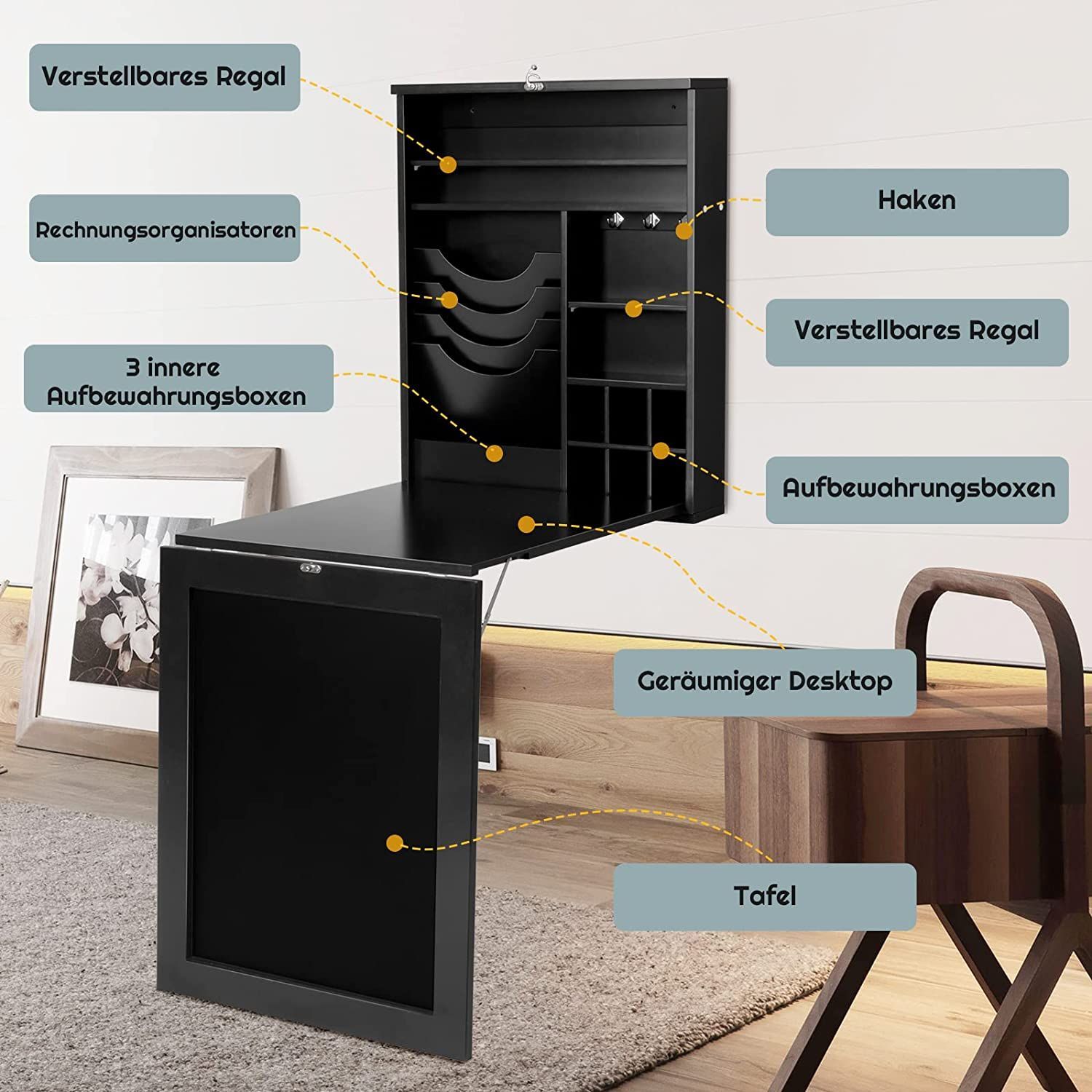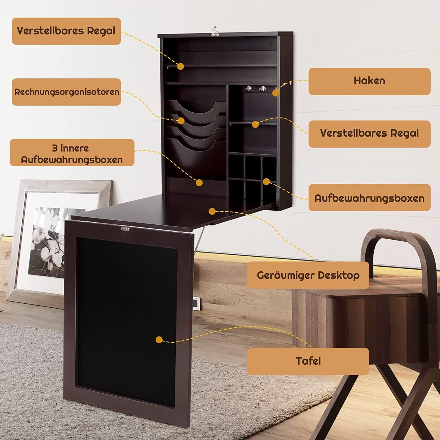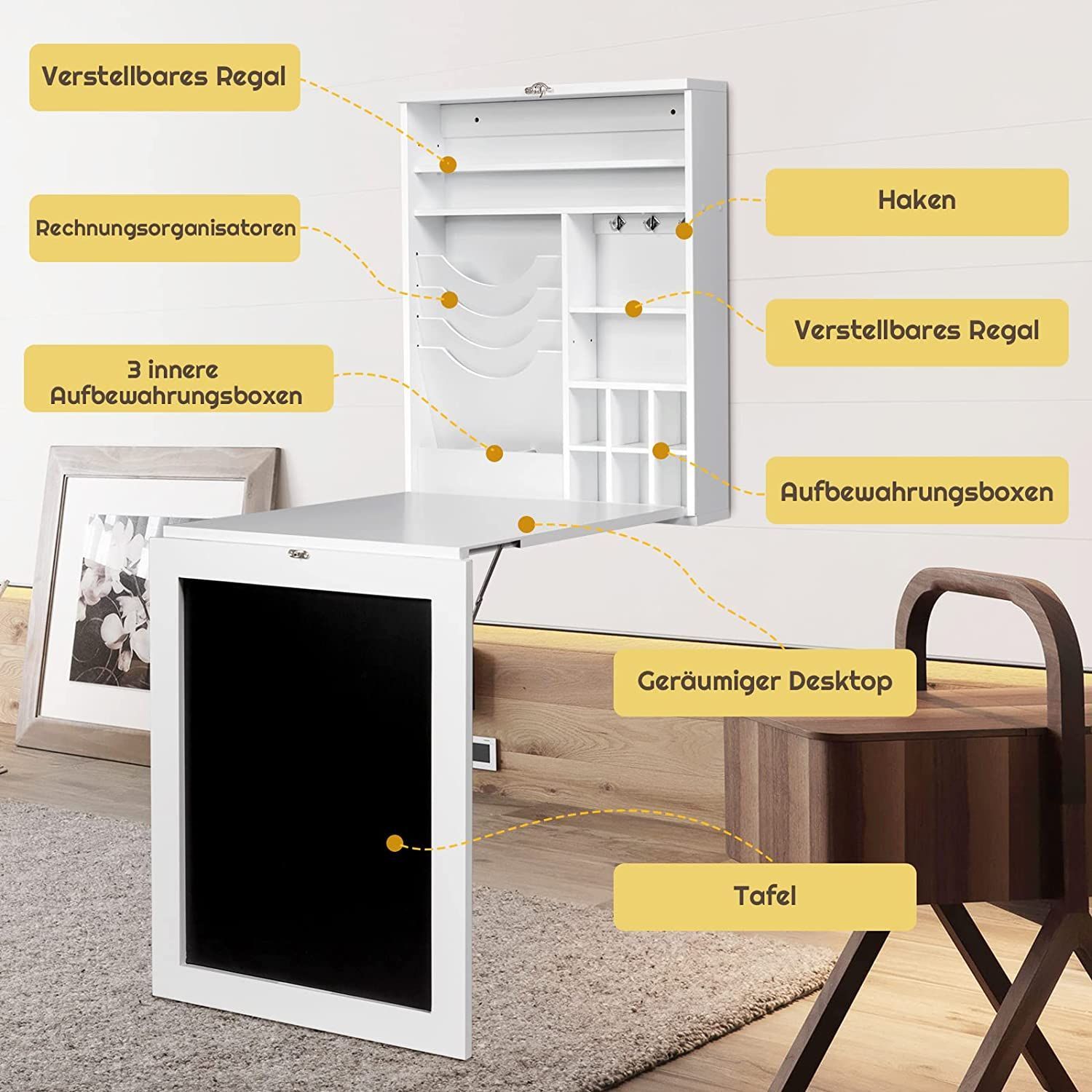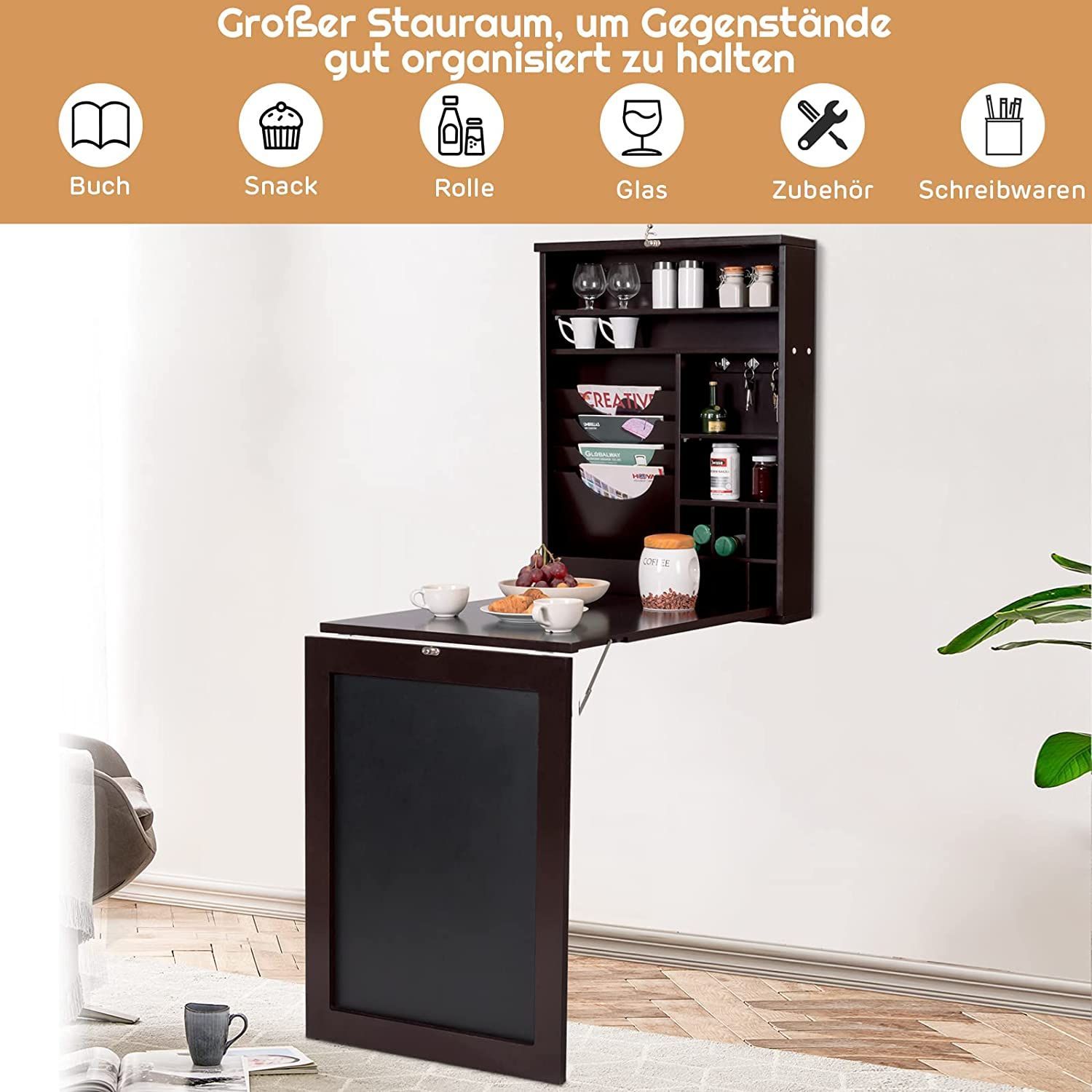 Wandtisch klappbar, Wandklapptisch mit Tafel, multifunktional Bartisch Esstisch Büro