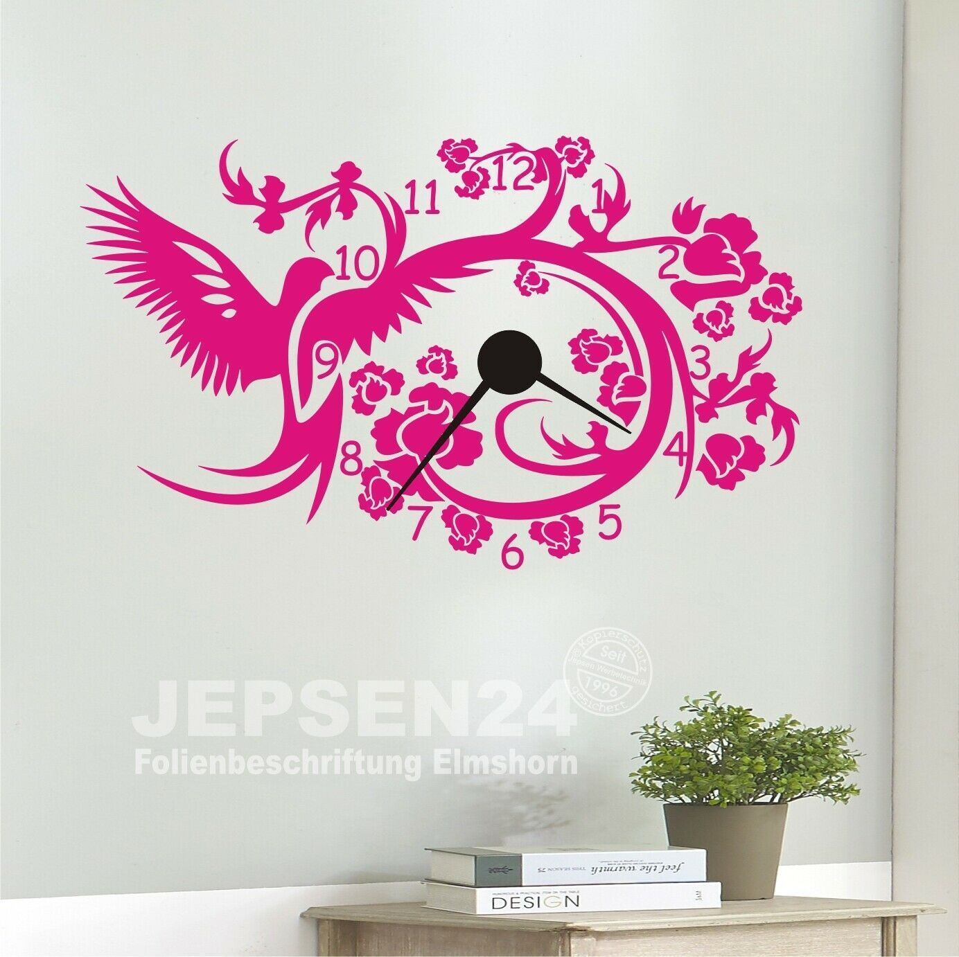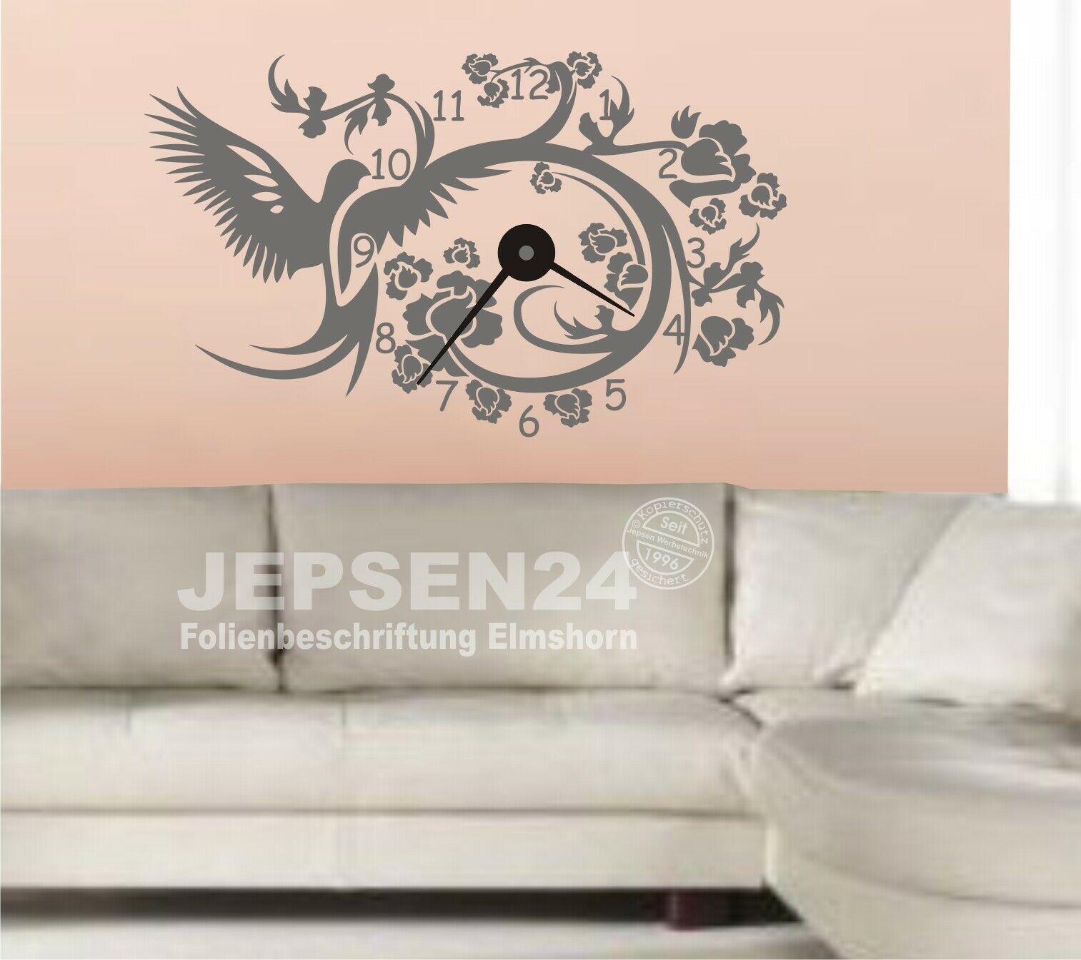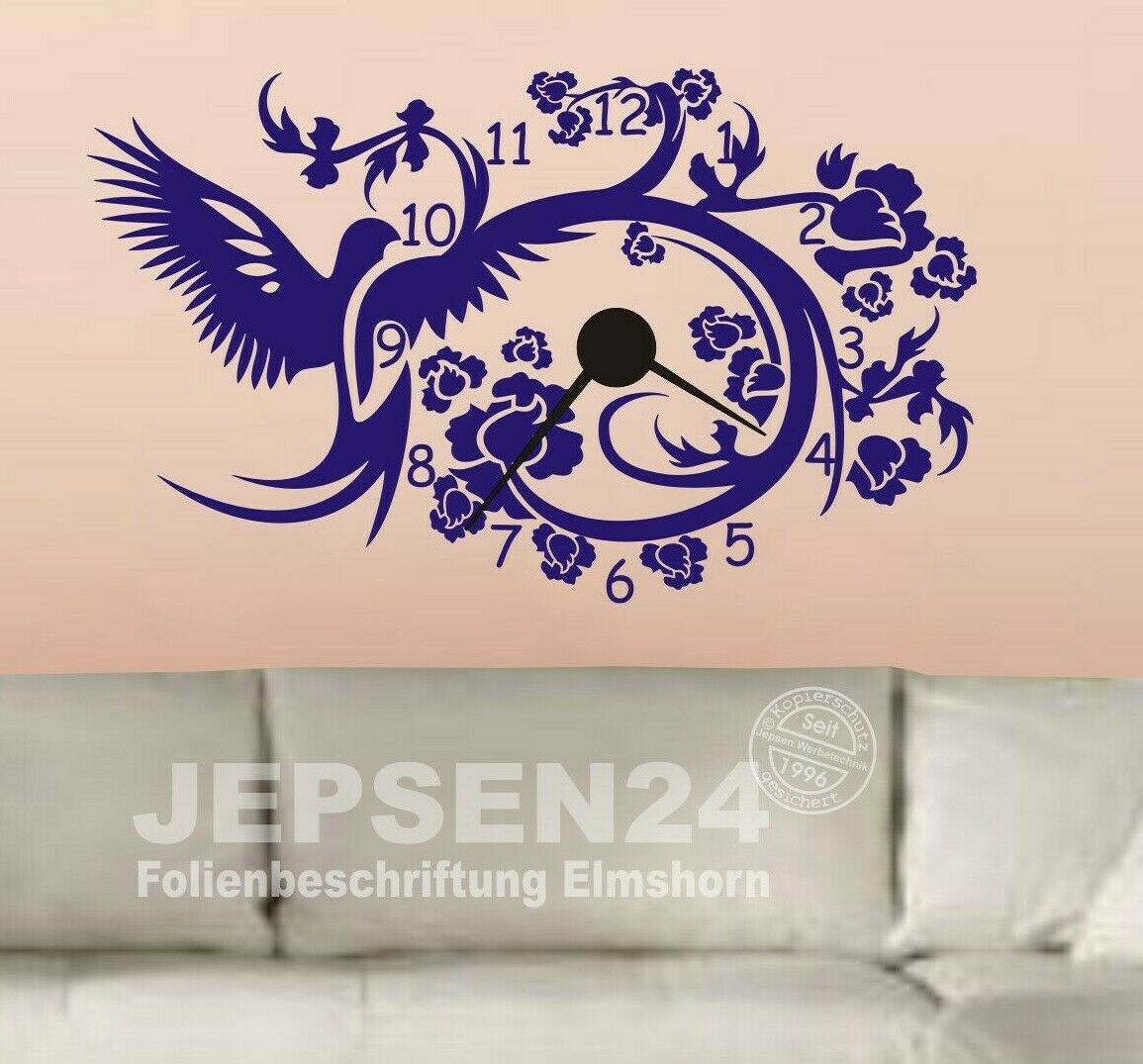 Wanduhr 03 Wandtattoo 100cm Taube Blüte Farbwahl - Uhrwerk silber oder schwarz