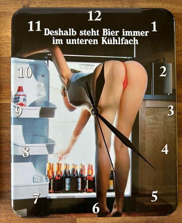 Wanduhr Deshalb steht Bier immer im unteren Kühlfach Größe 20 x 25 x 2 cm Material: Blech 1 x AA Batterie notwendig - nicht im Lieferumfang enthalten WEEE Nr. 55395988