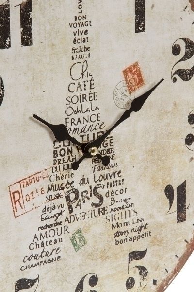 Wanduhr Eiffelturm III MDF Weiß Antik