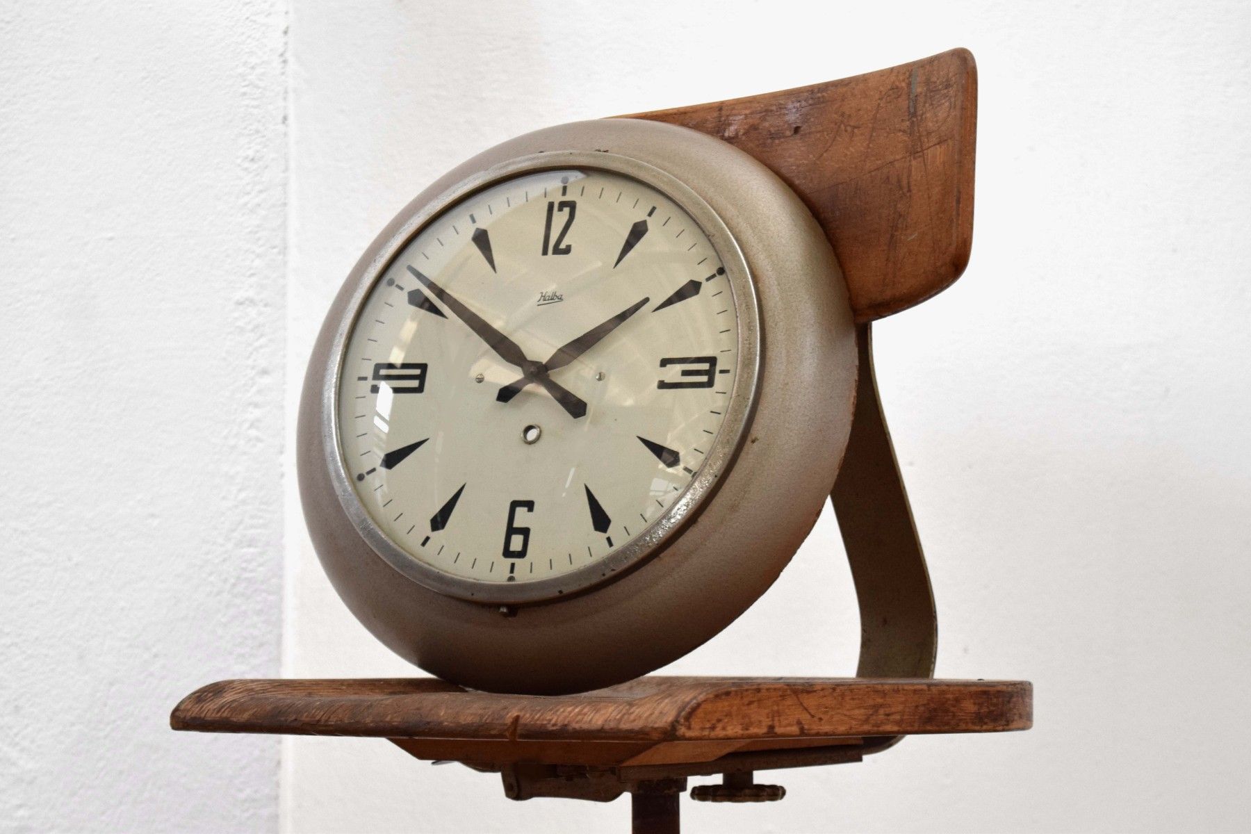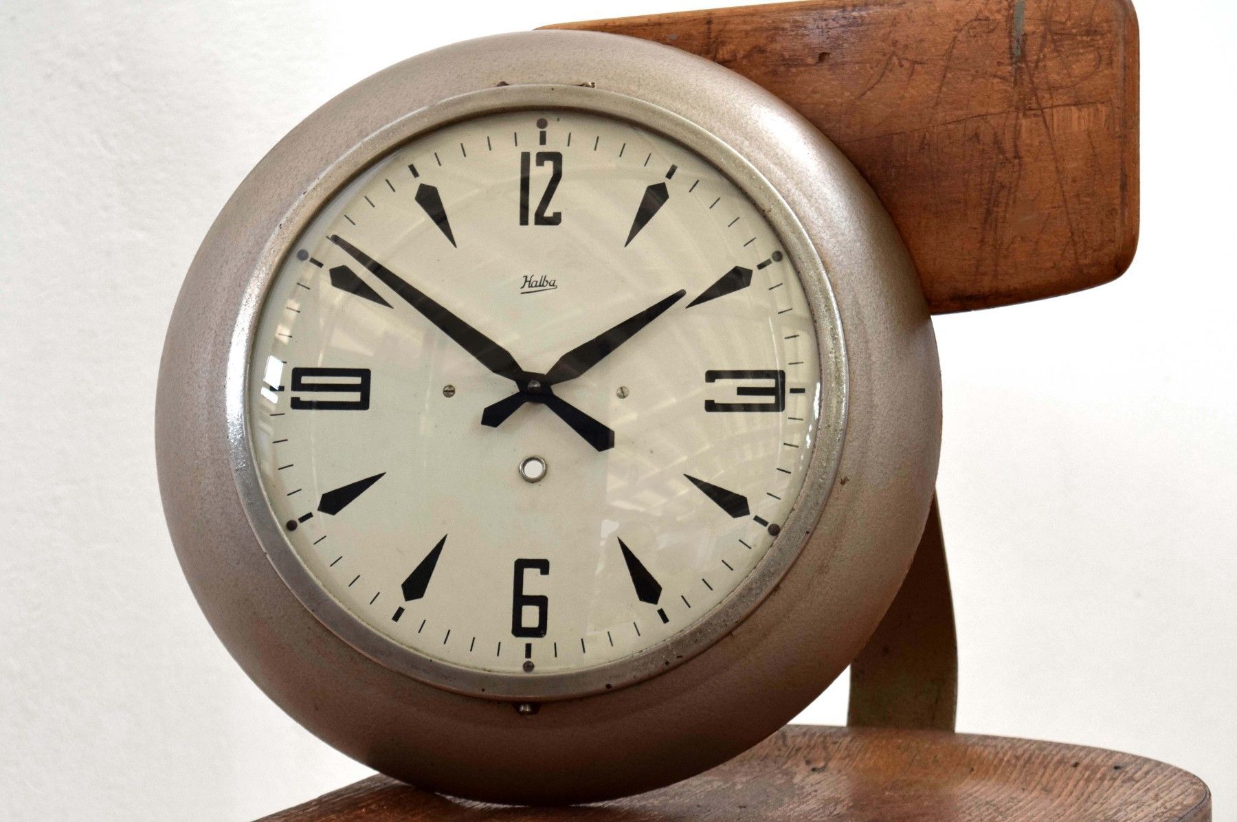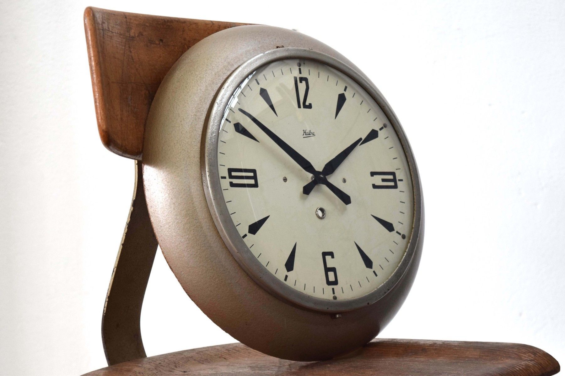 Wanduhr Fabrikuhr Bakelit Halba Antik Bahnhofsuhr Uhr Alt Vintage Rund Mid Century