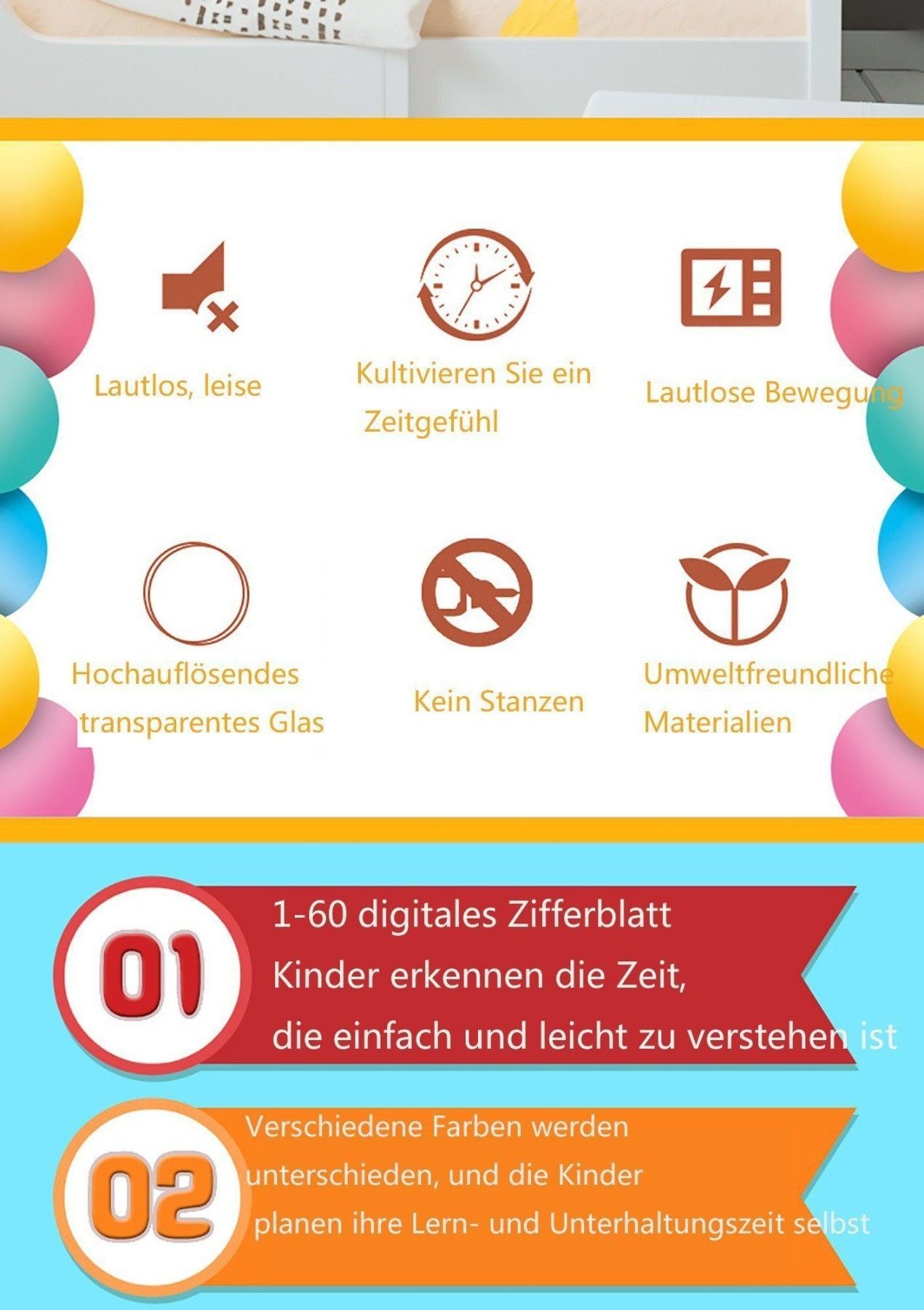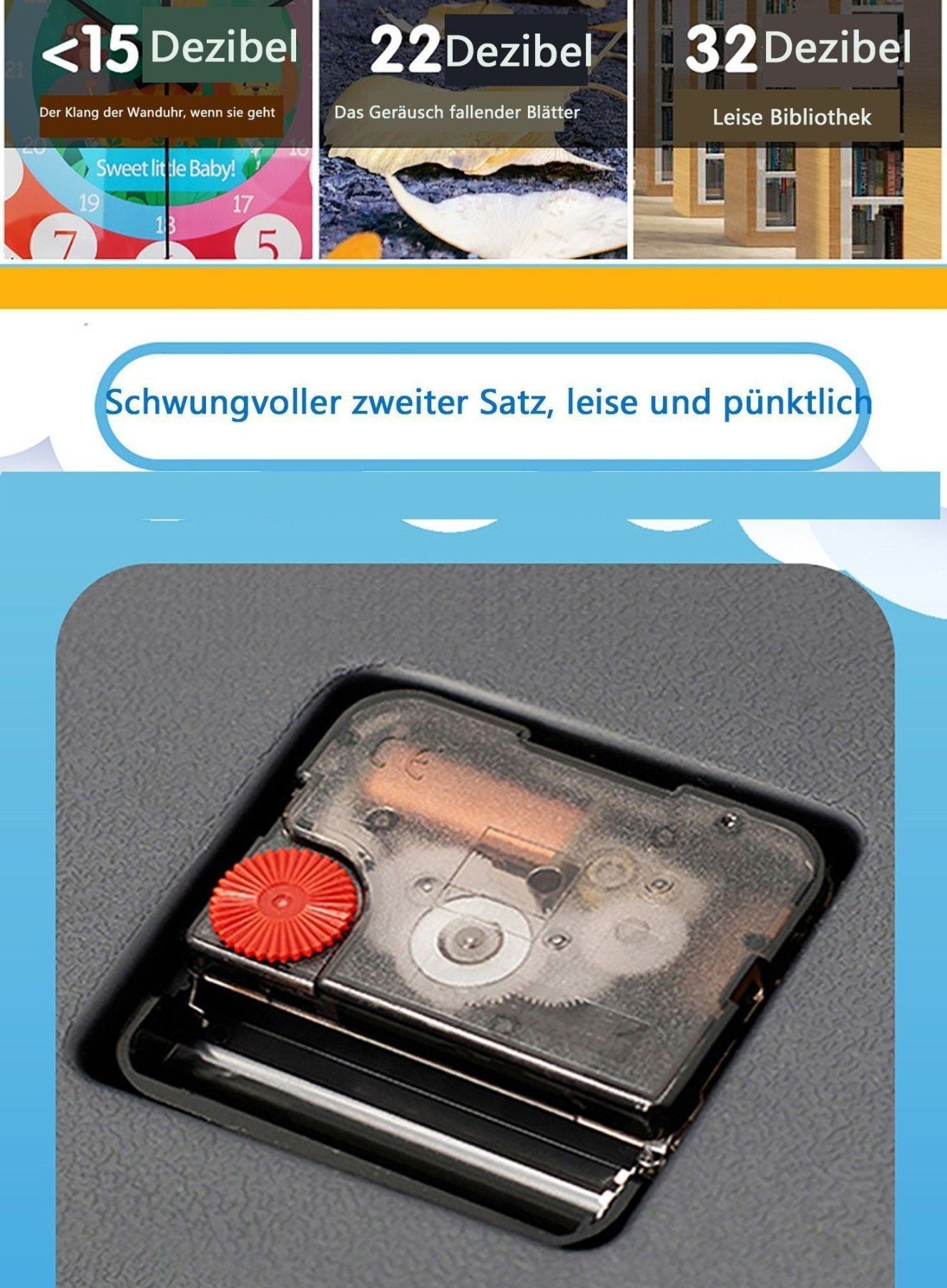 Wanduhr Kinderwanduhr, leise und nicht tickend, leicht zu lesen