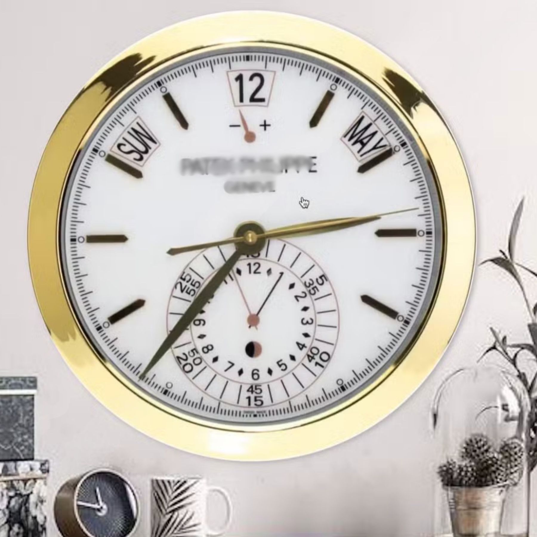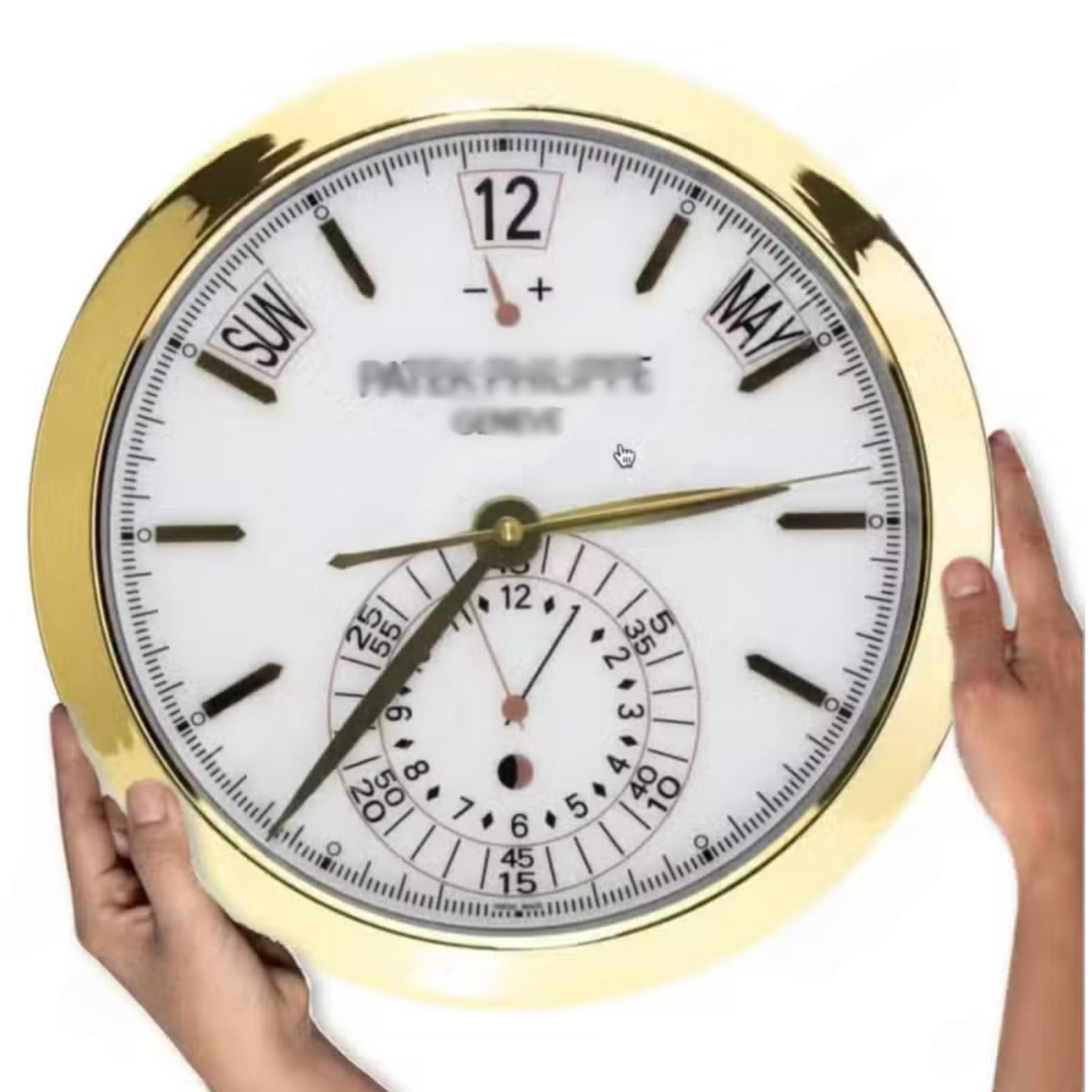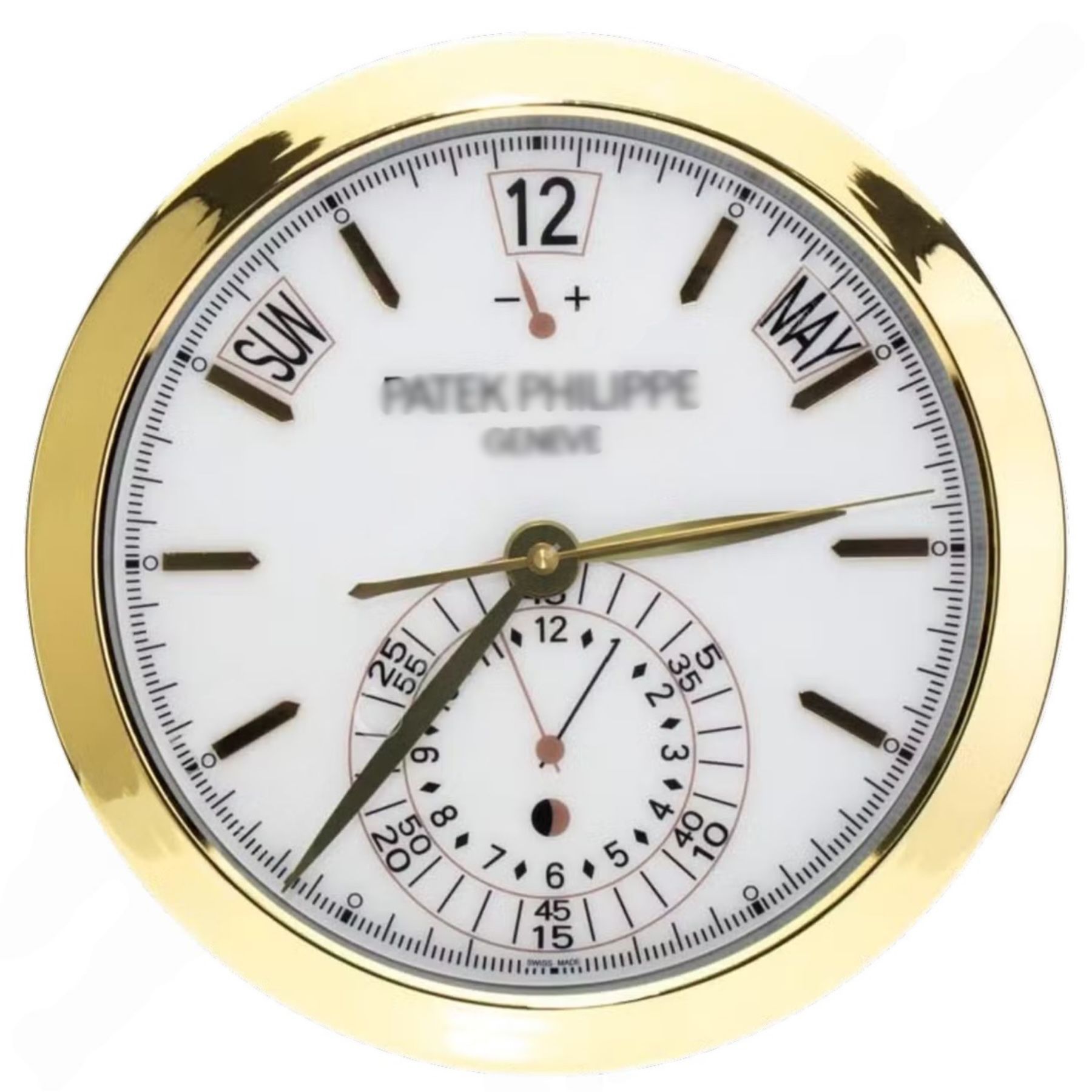 Wanduhr Patek Philippe Annual Calendar Weißes Zifferblatt Gold Dealer Display