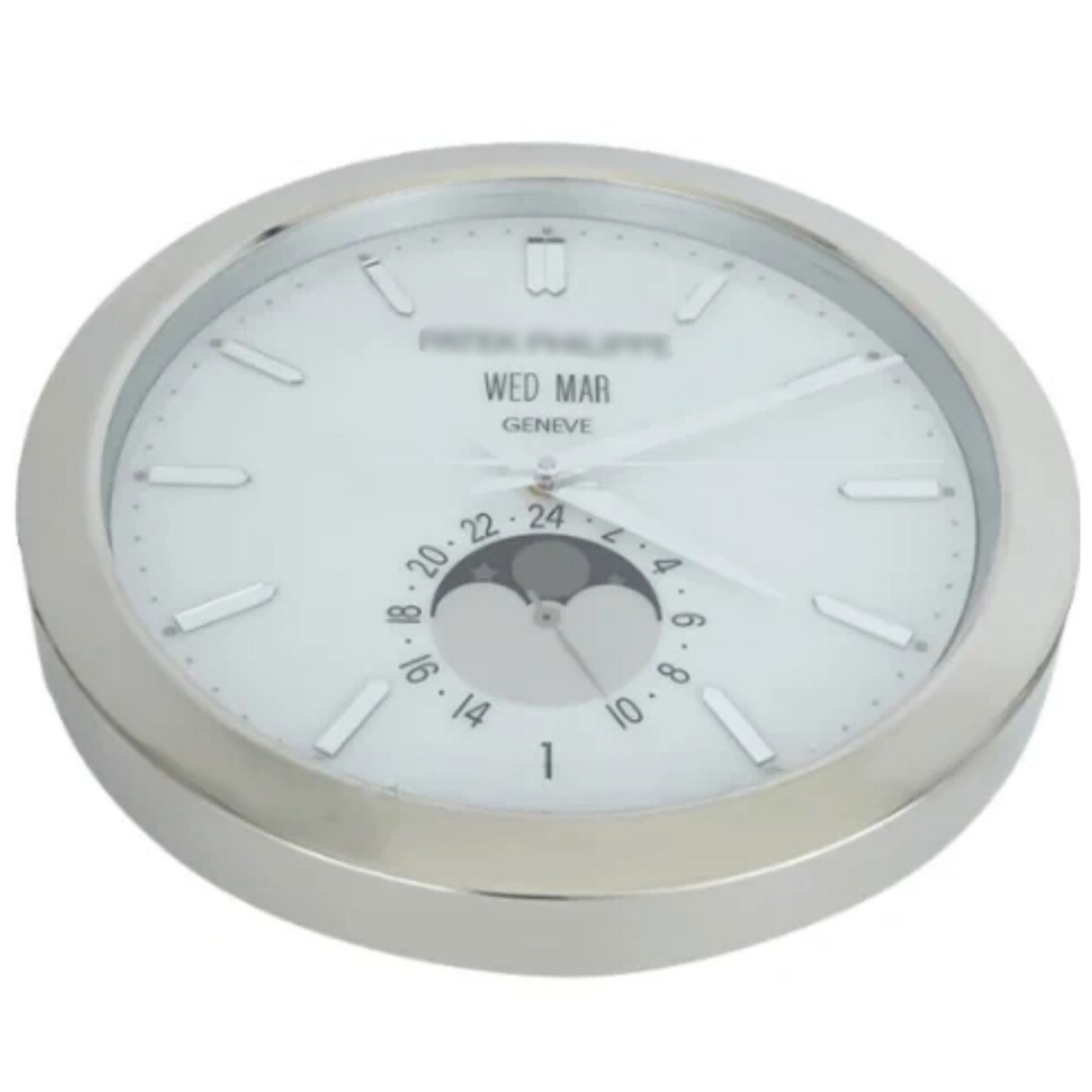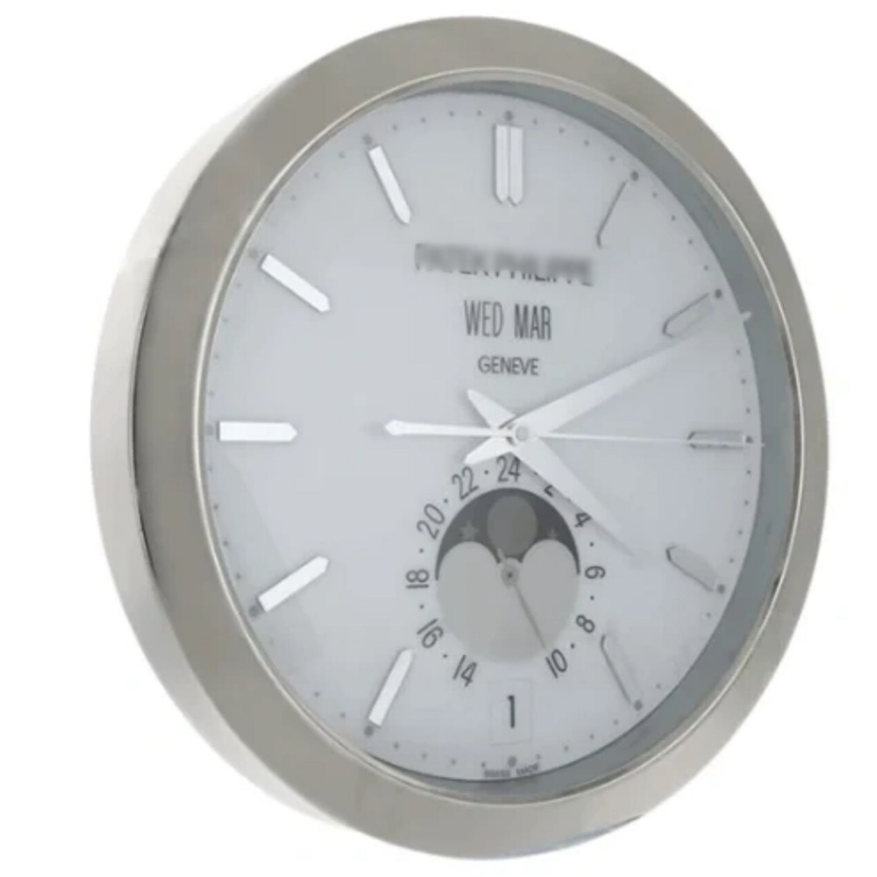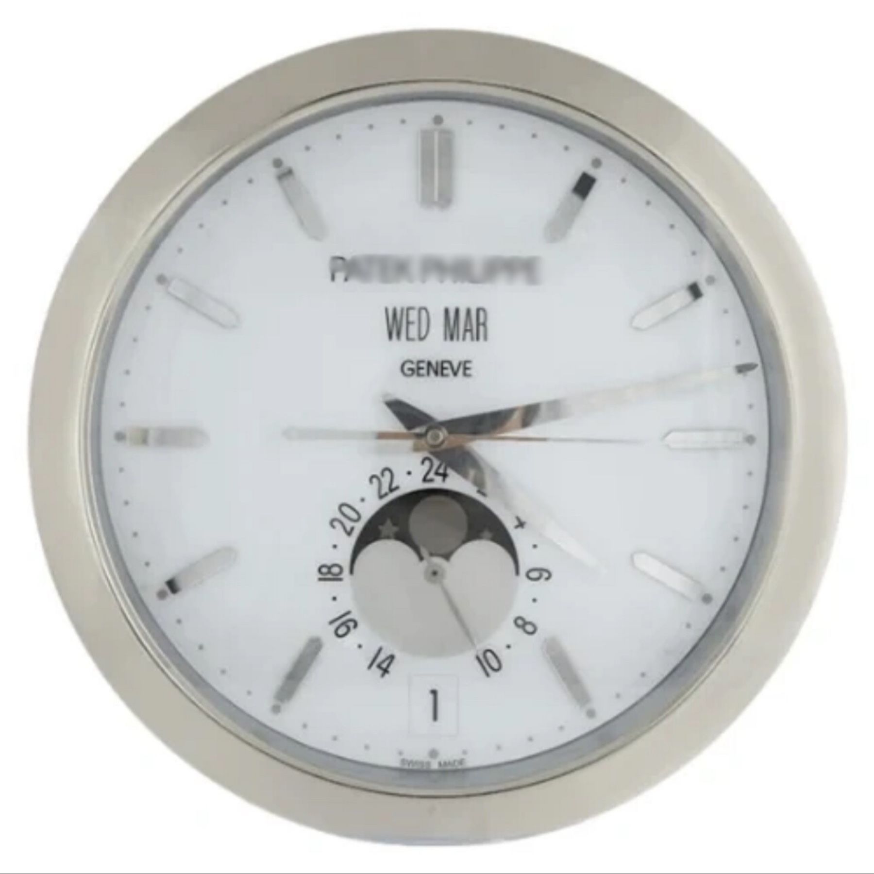 Wanduhr Patek Philippe Mondphase Weißes Zifferblatt Stahl 40cm Dealer Display