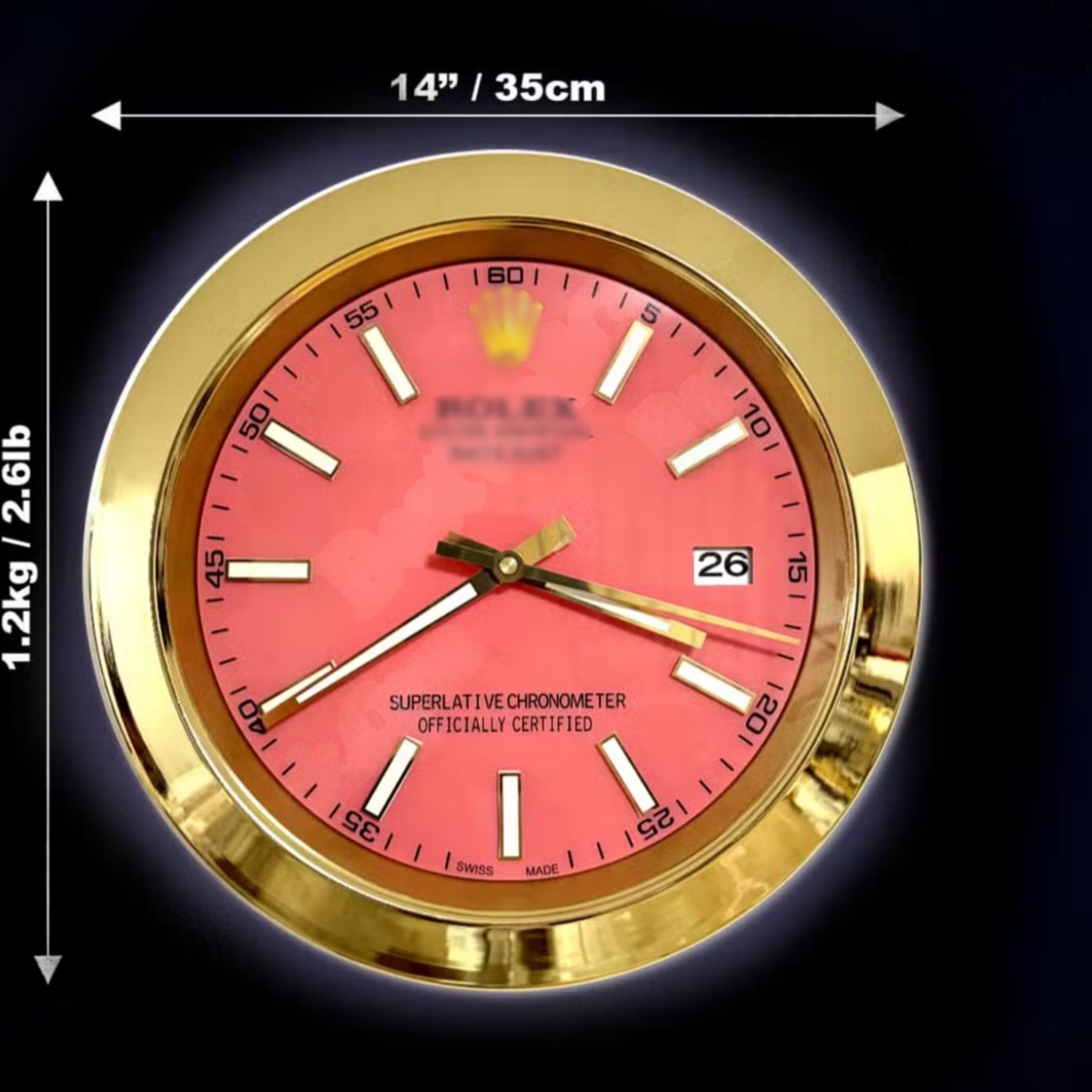 Wanduhr Rolex Datejust Rose Zifferblatt Gold Smooth Bezel Dealer Display