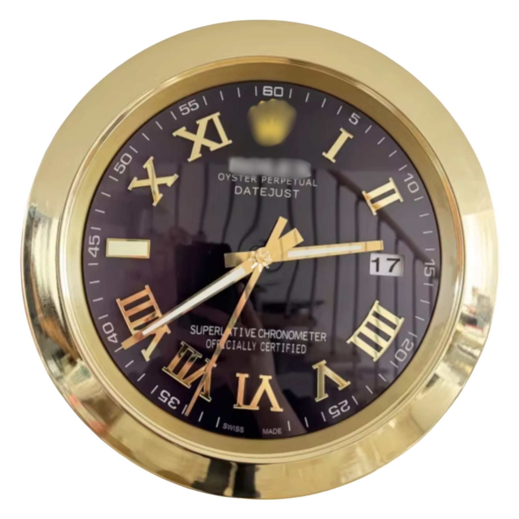 Wanduhr Rolex Datejust Schwarz Römisches Zifferblatt Gold Smooth Bezel Dealer Display