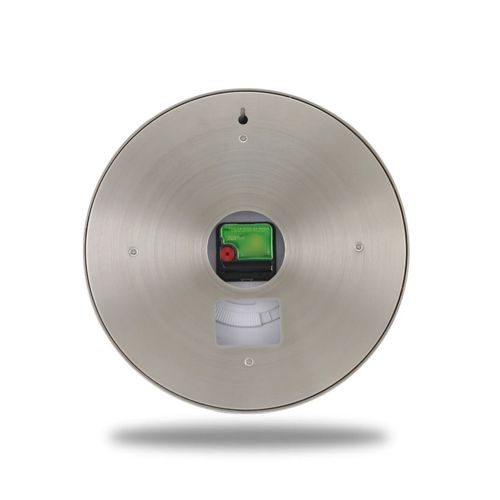 Produktdetails: Zustand: Neu & originalverpackt Durchmesser: 34 cm Material Gehäuse: Gebürsteter Edelstahl Abdeckung: Bruchsicheres Plexiglas Uhrwerk: Präzises Quarzwerk besondersleise & geräuscharm Stromversorgung: 1x AA-Batterie erforderlich (nicht im Lieferumfang enthalten) Aufhäungung: I