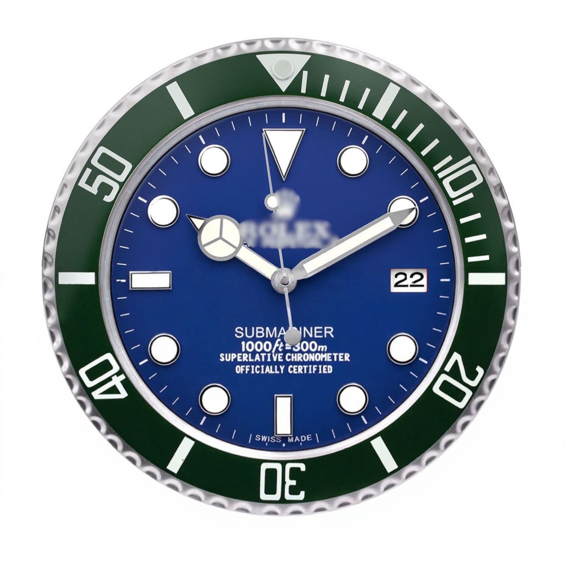 Wanduhr Rolex Submariner Grün Blau Oyster Perpetual 34cm Moderne Luxusuhr