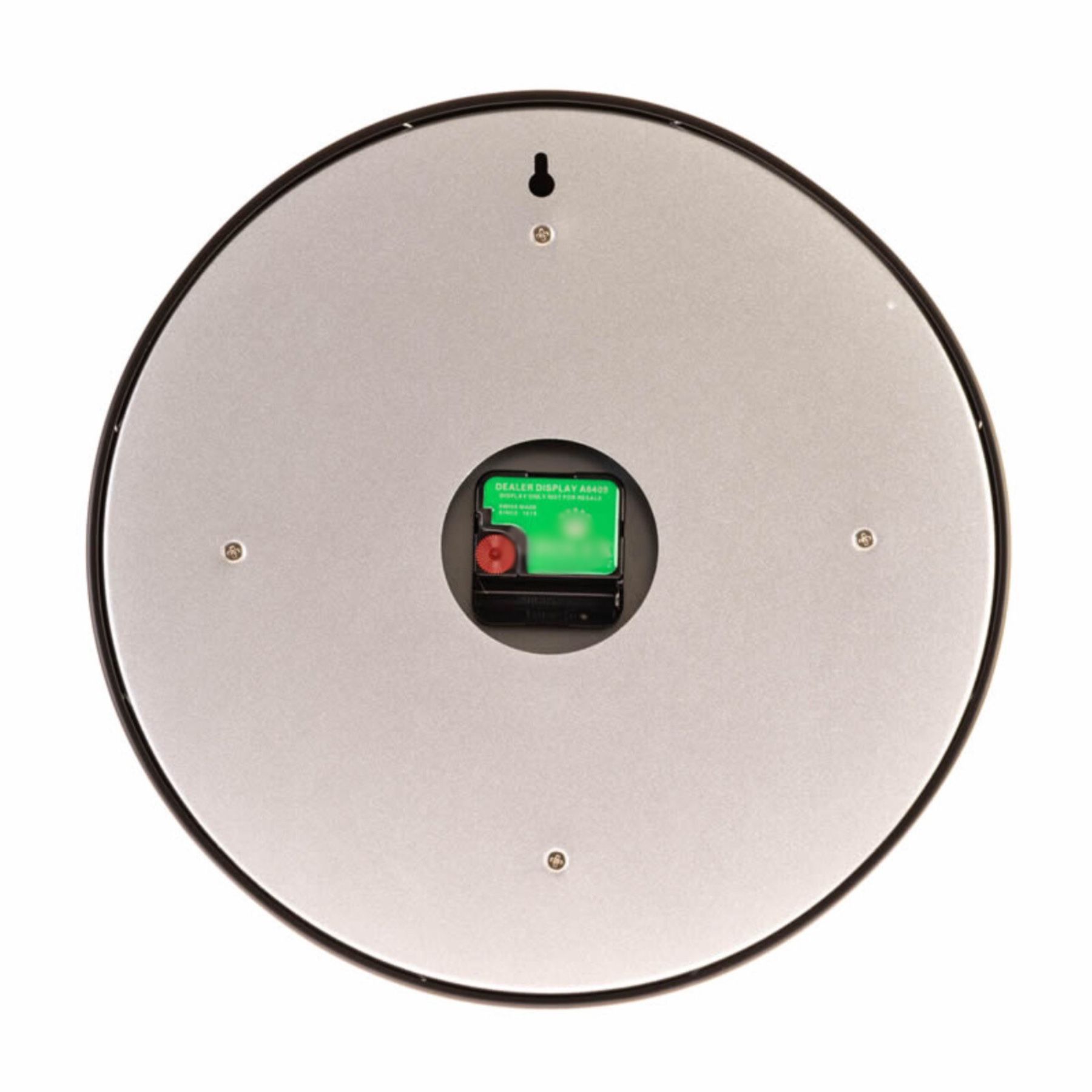 Produktdetails: Zustand: Neu & originalverpackt Durchmesser: 34 cm Material Gehäuse: Gebürsteter Edelstahl Abdeckung: Bruchsicheres Plexiglas Uhrwerk: Präzises Quarzwerk besondersleise & geräuscharm Stromversorgung: 1x AA-Batterie erforderlich (nicht im Lieferumfang enthalten) Aufhäungung: I