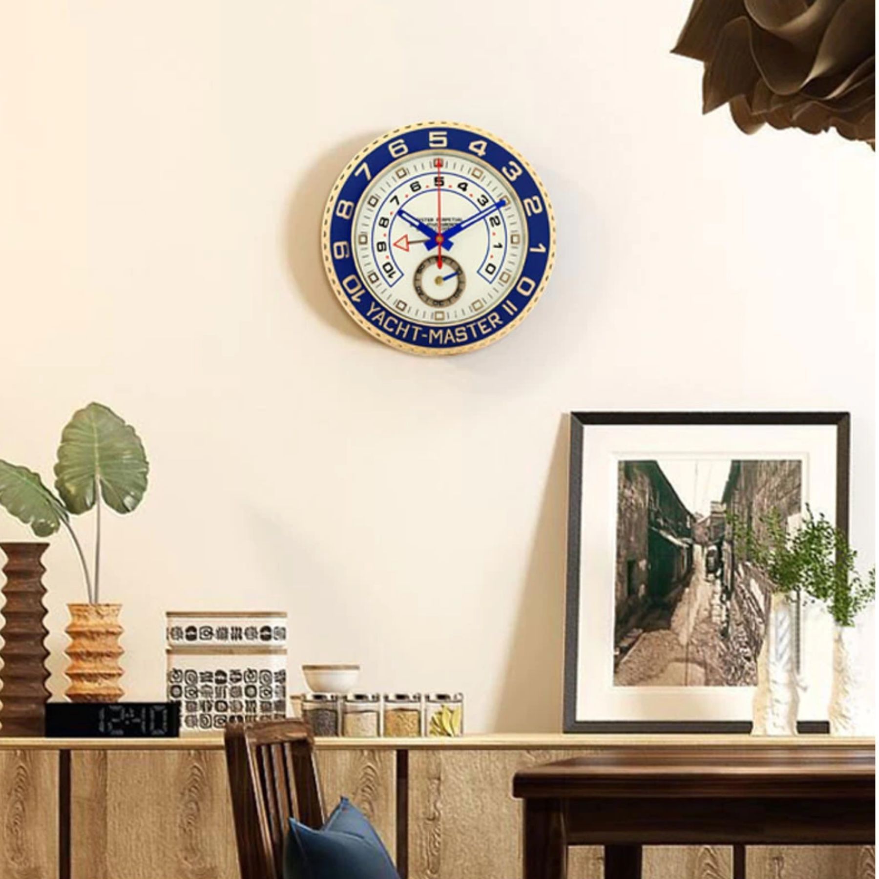 Wanduhr Rolex Yachtmaster 2 Gold Oyster Perpetual Blau Weiß 34cm Moderne Luxusuhr