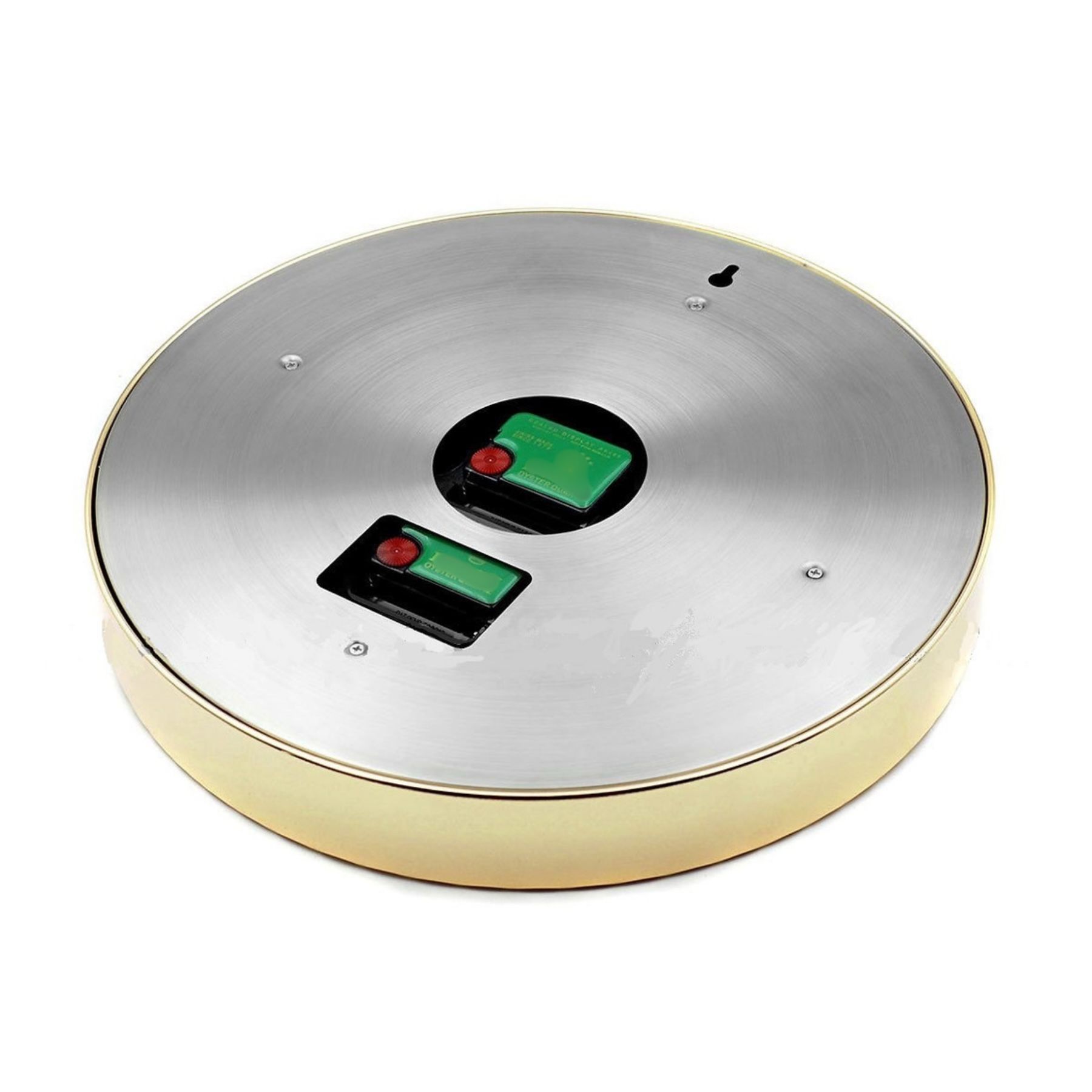 Produktdetails: Zustand: Neu & originalverpackt Durchmesser: 34 cm Material Gehäuse: Gebürsteter Edelstahl Abdeckung: Bruchsicheres Plexiglas Uhrwerk: Präzises Quarzwerk besondersleise & geräuscharm Stromversorgung: 1x AA-Batterie erforderlich (nicht im Lieferumfang enthalten) Aufhäungung: I