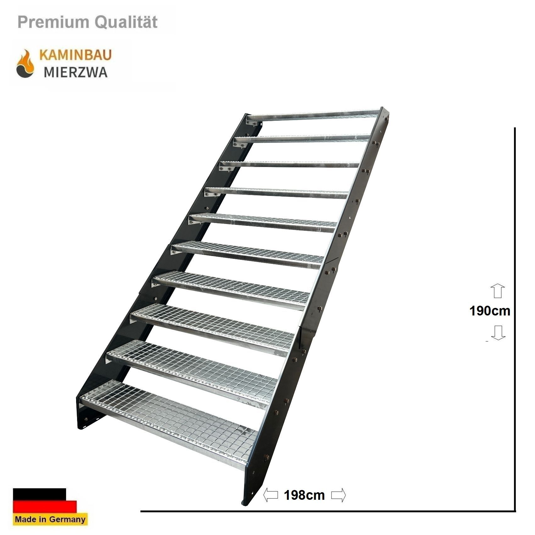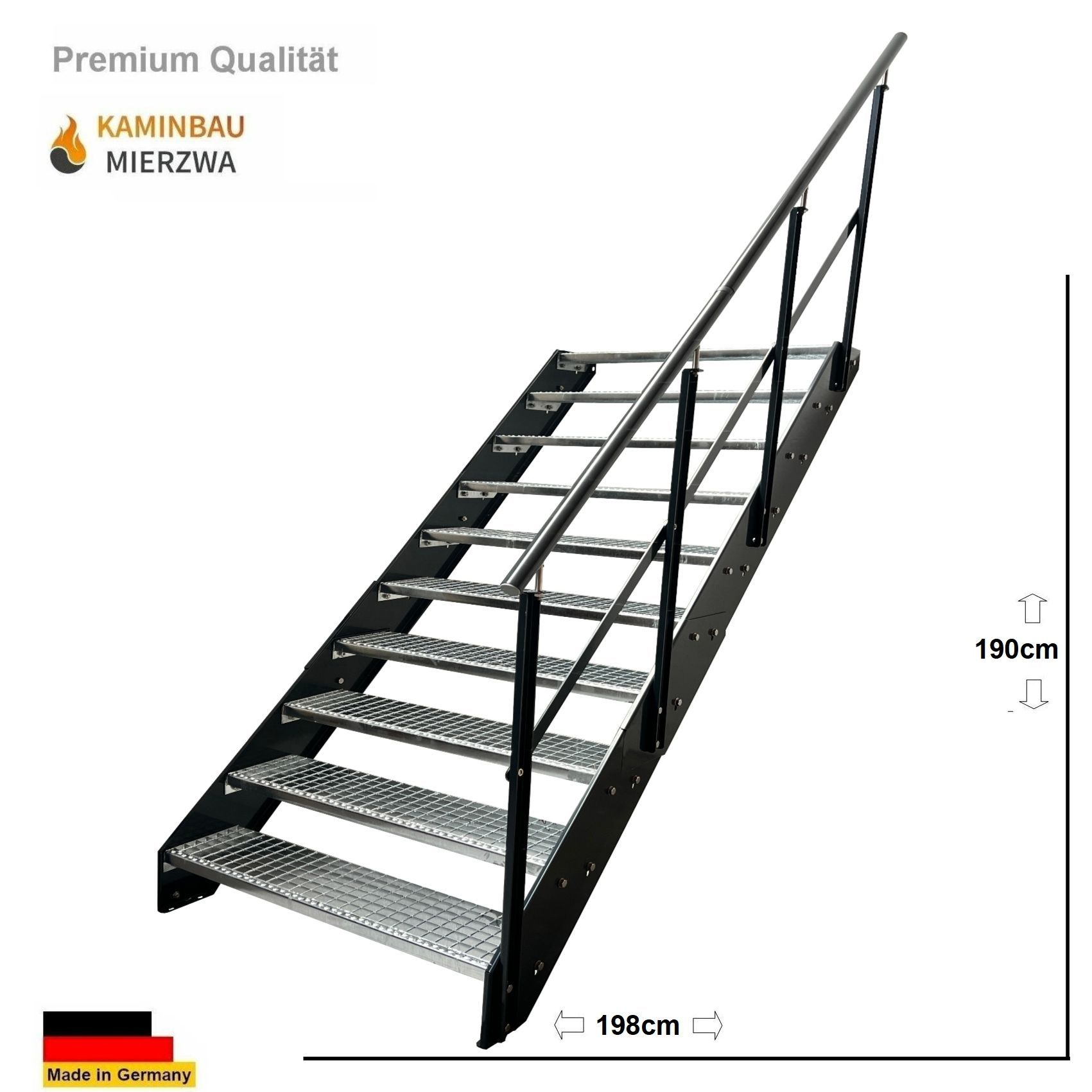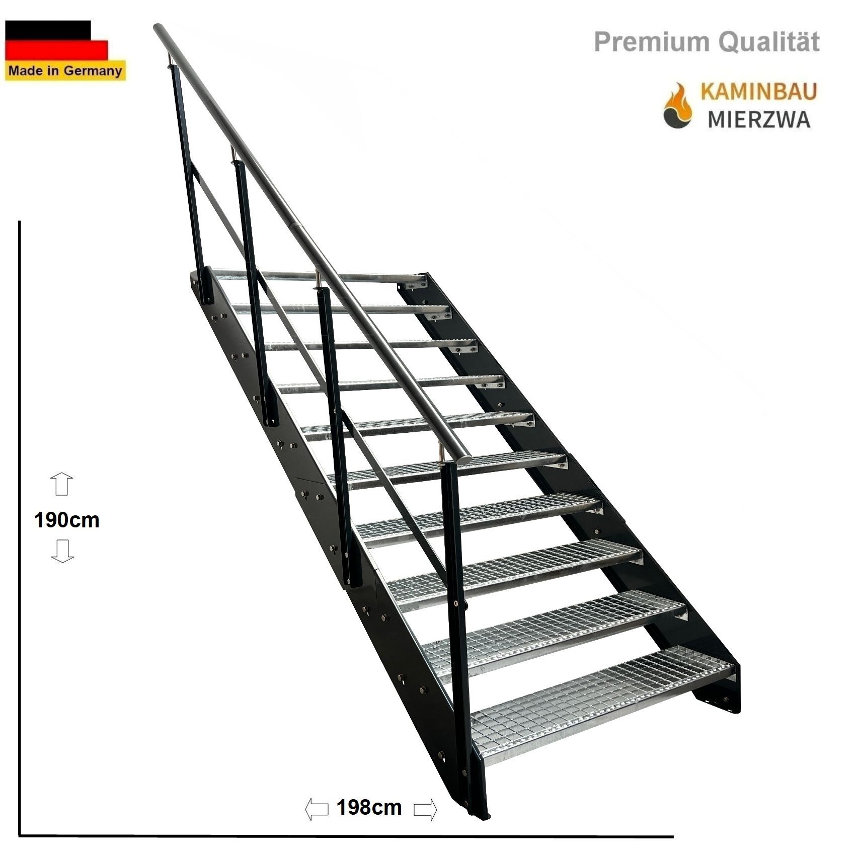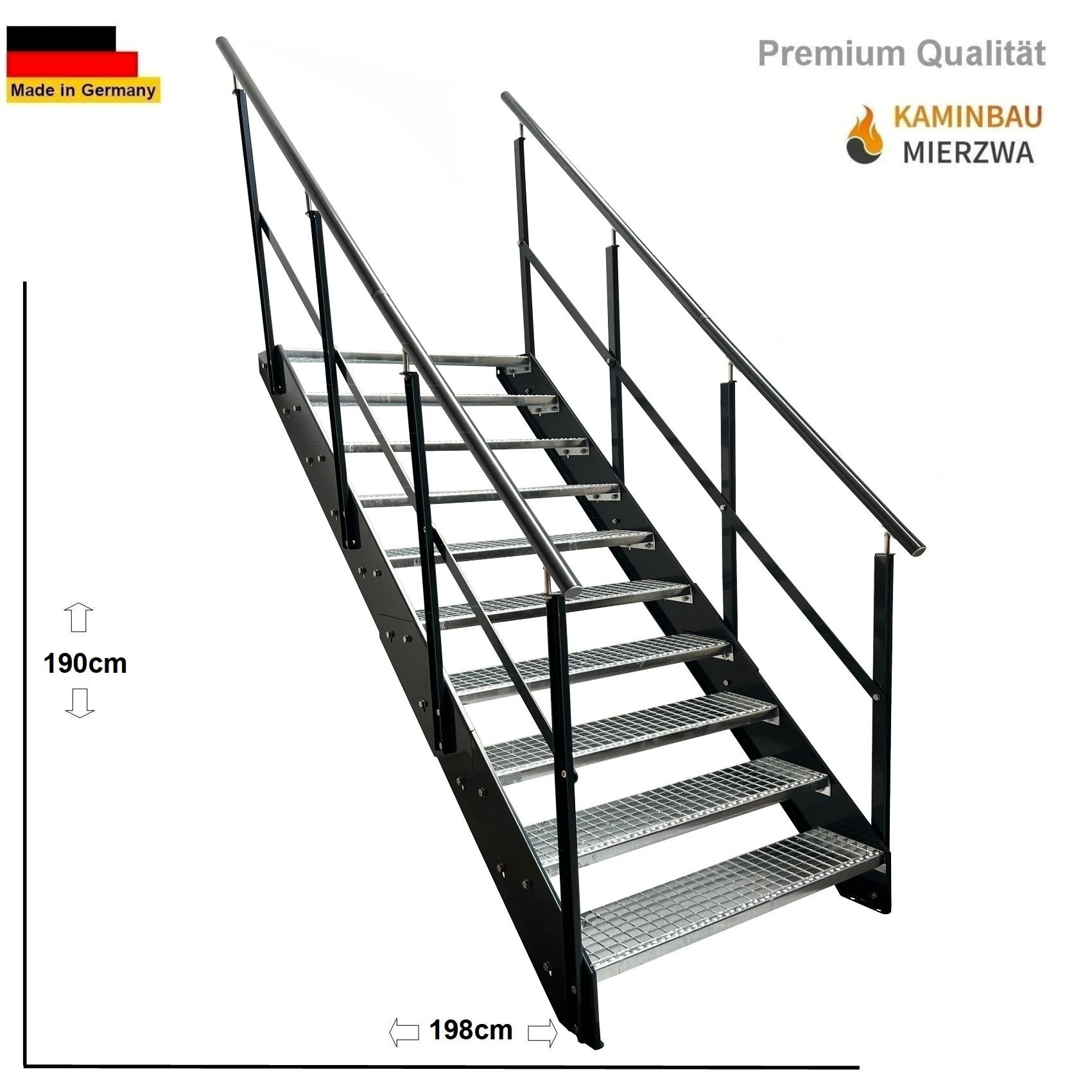 Wangentreppe Geländer 10 Stu. Wangen und Geländer Pulverlackiert H:190cm