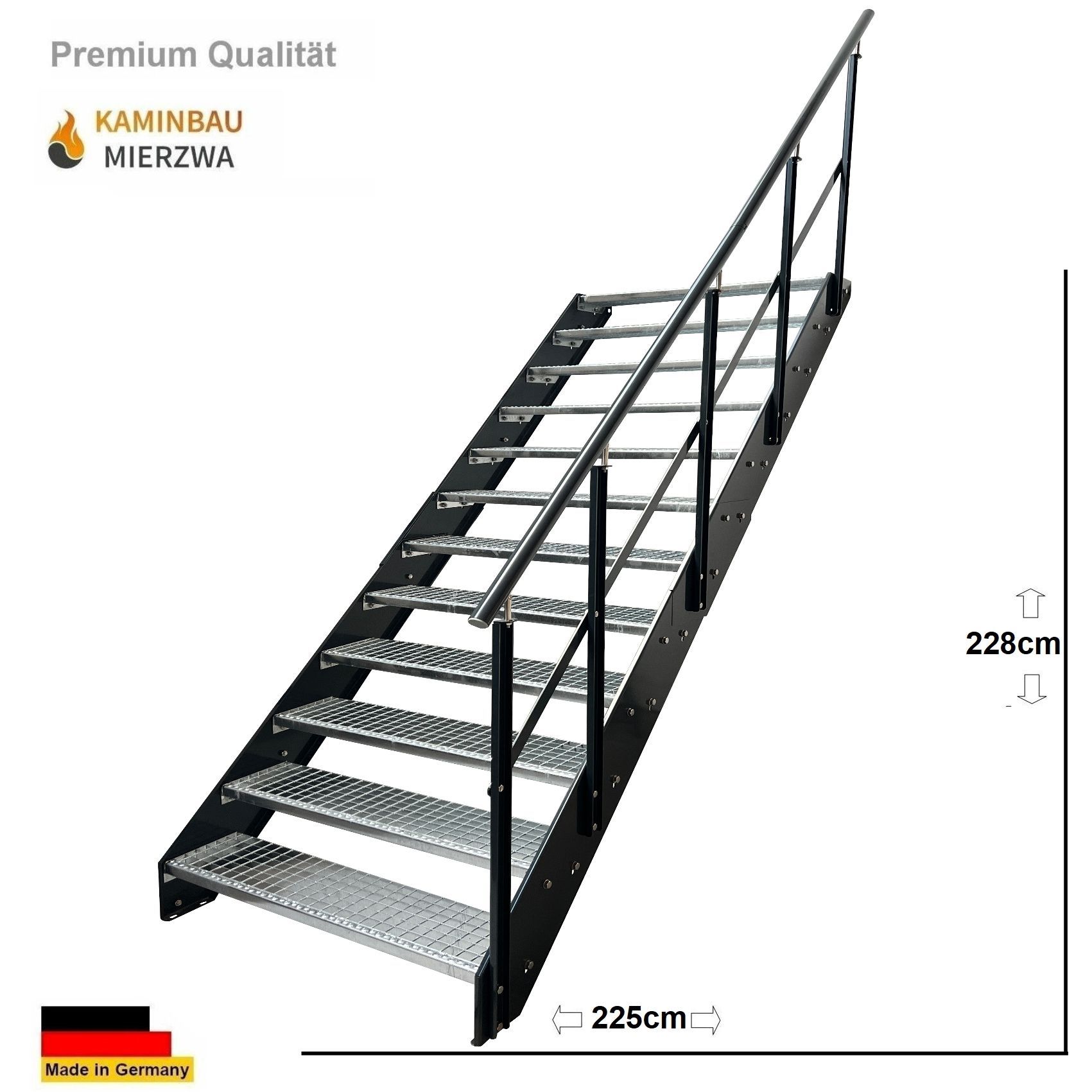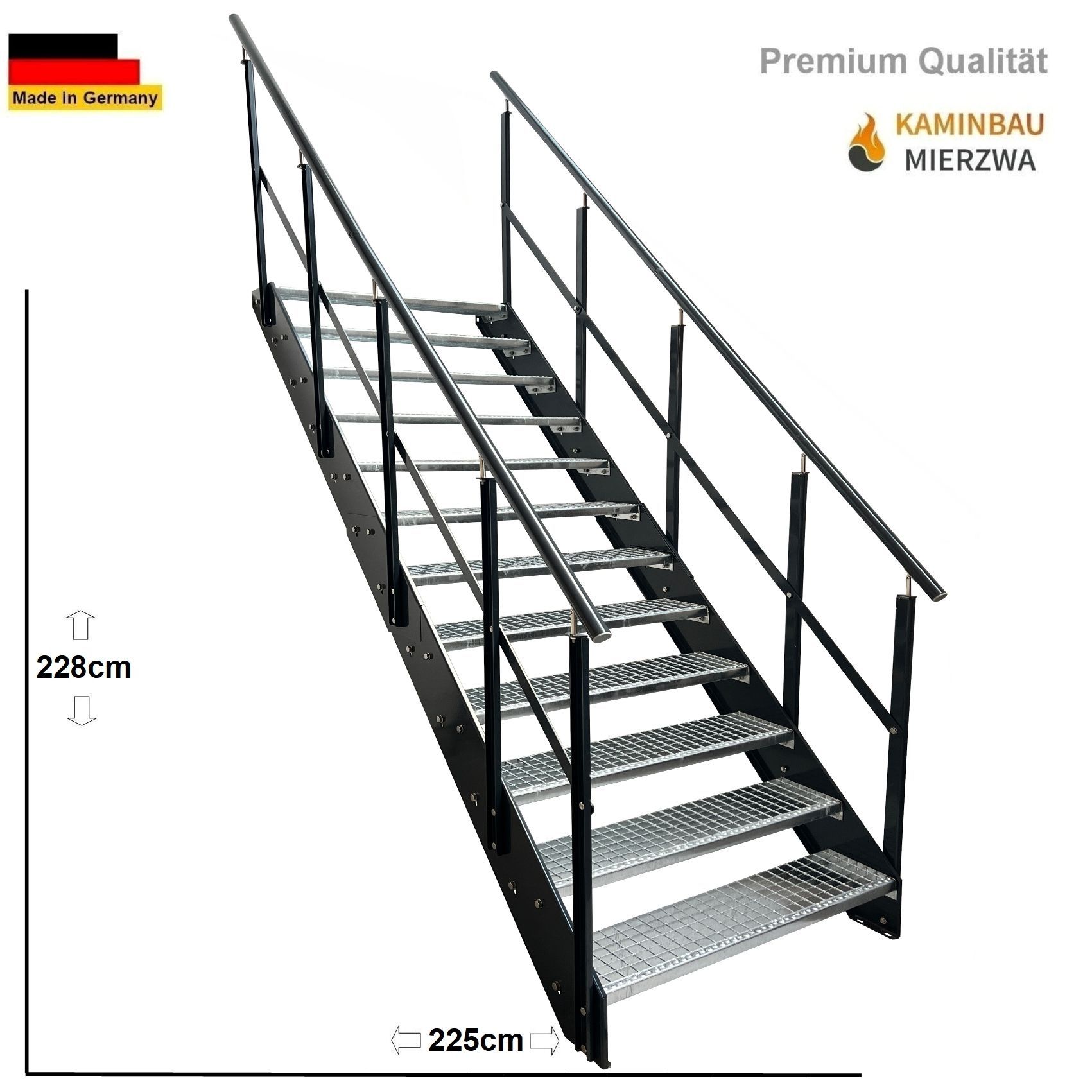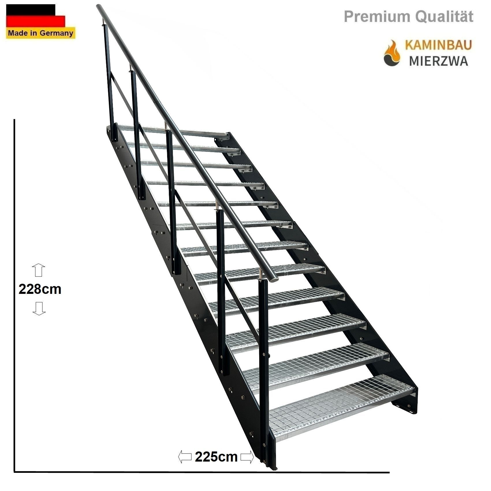 Wangentreppe Geländer 12 Stu. Wangen und Geländer Pulverlackiert H:228cm