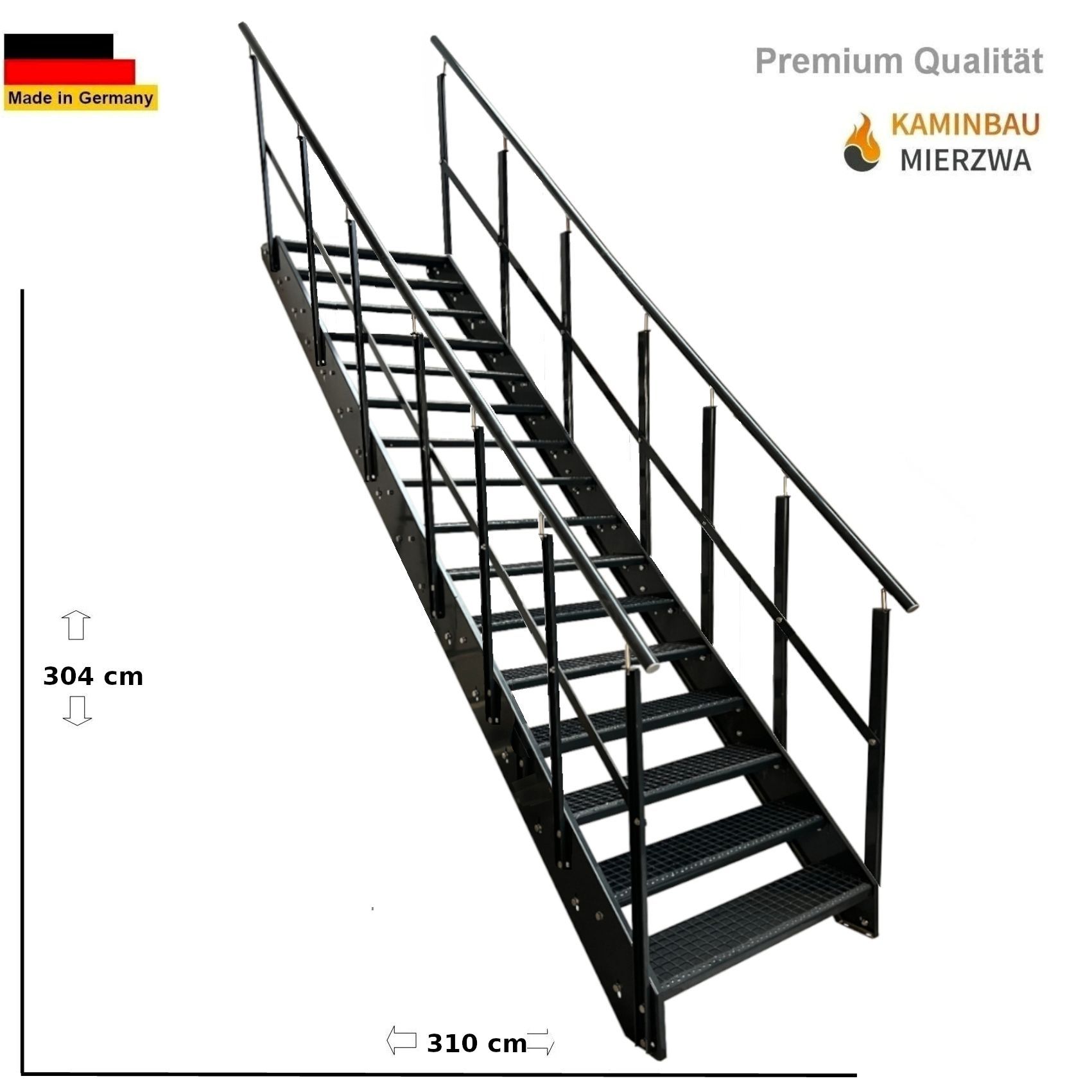 Wangentreppe Geländer 16 Stu. Ganz Pulverlackiert H:304cm