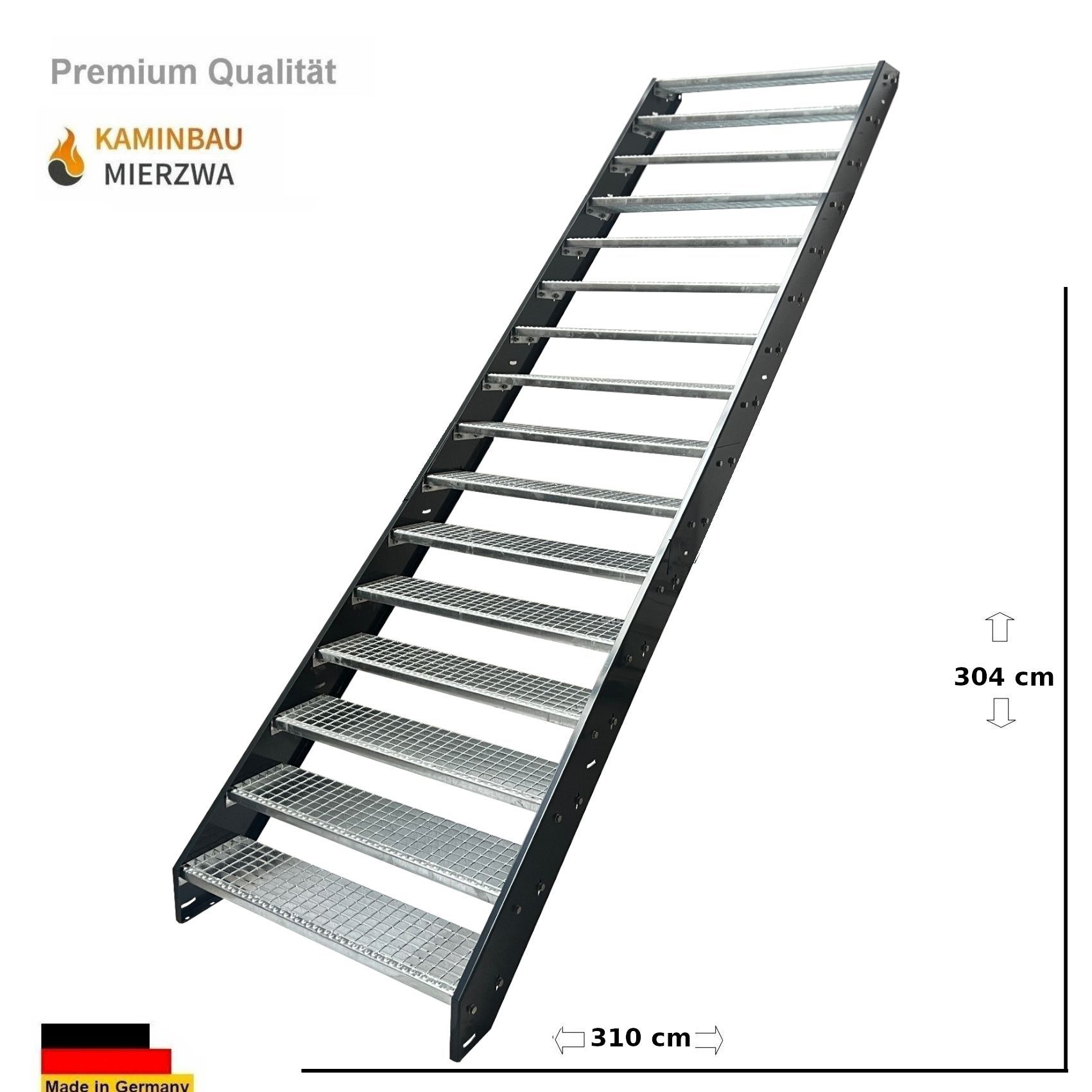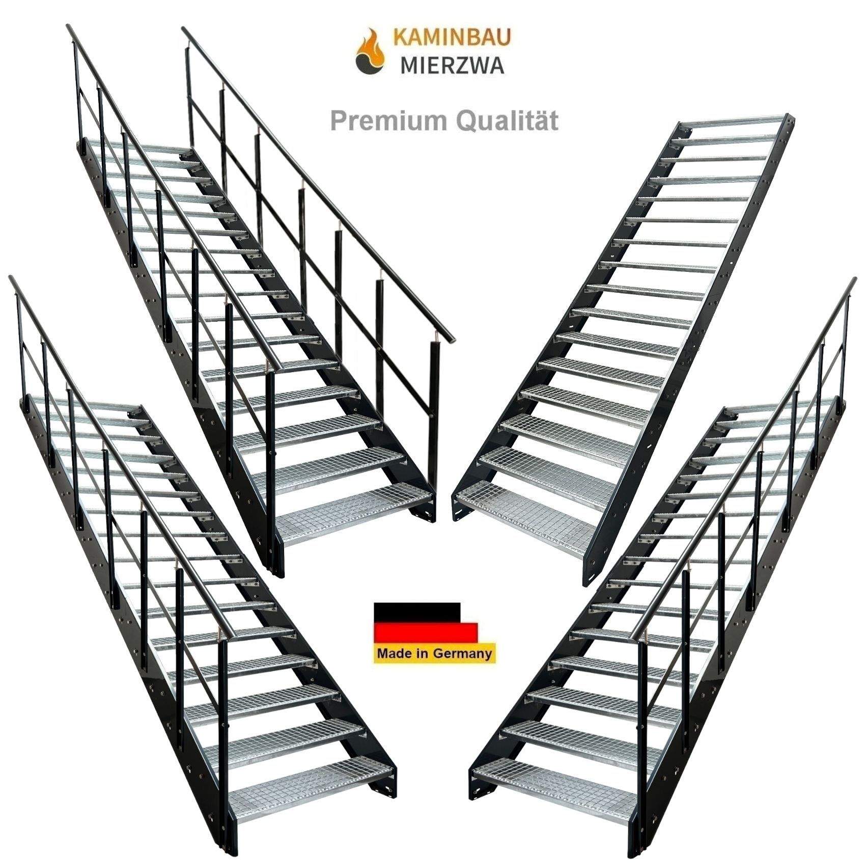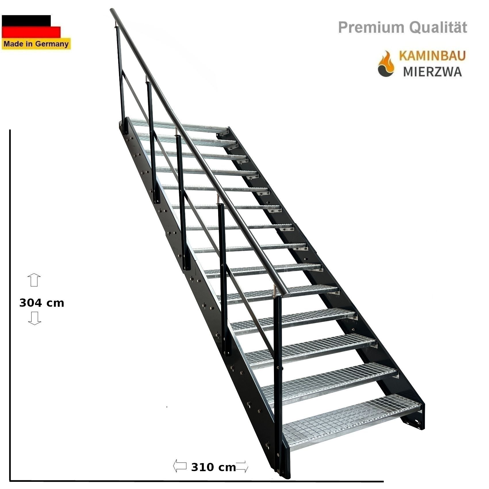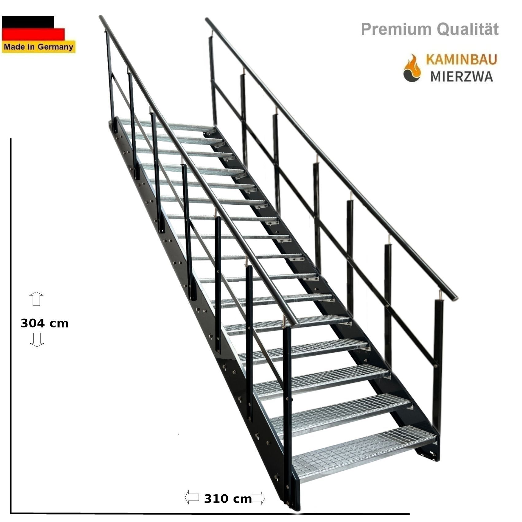 Wangentreppe Geländer 16 Stu. Wangen und Geländer Pulverlackiert H:304 cm